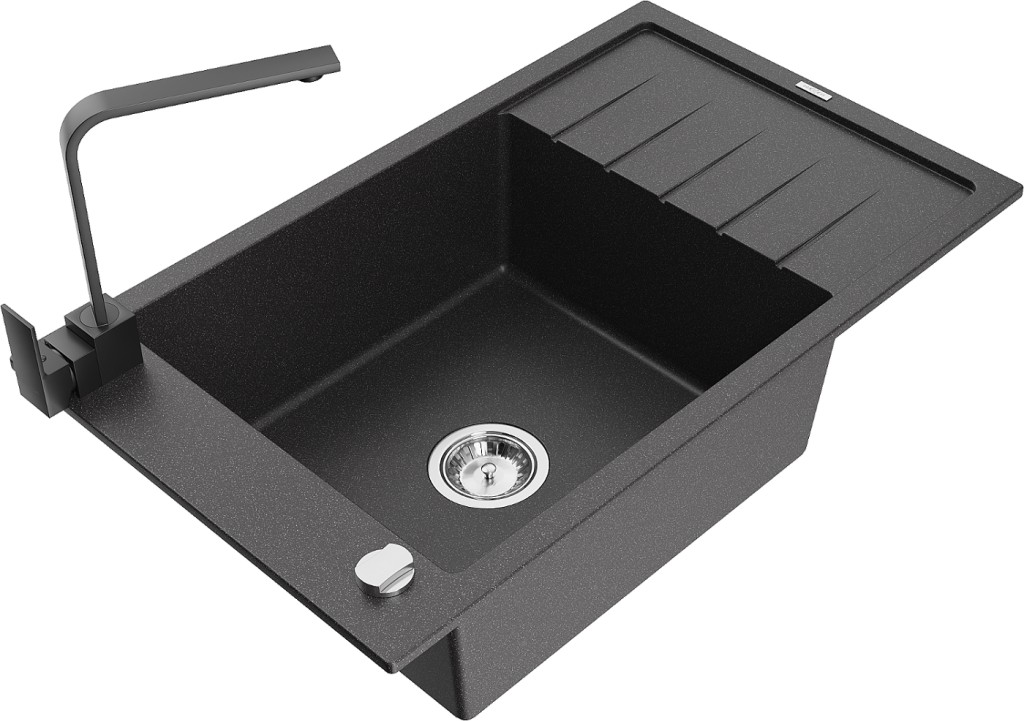 Technické dáta: drez: Rozmer: 795 x 480 x 200 mm Hĺbka komory: 190 mm Rozmery komory: 465x420 mm Priemer odtoku: ø90 mm Typ: 1-miska s krátkym odkvapkávačom Typ: Zapustené do pracovnej dosky Farba: Škvrnitá čierna Povrchová úprava sifónu: Chrome Materiál: žula (80% žulové kamenivo, 20% živice) Prepadový otvor: Áno Otvory: (batérie, automatické) 2 Inštalácia: Univerzálna, je možné inštalovať s odkvapkávačom na ľavú alebo pravú stranu Vysoká odolnosť proti poškriabaniu a zmene farby Odolnosť proti tepelným šokom Ľahko čistiteľný povrch Jeden dodatočný vyfrézovaný otvor na samodierovanie ø35 kuchynská batéria: Materiál: mosadz Čierna farba Hlava: Keramická Prevzdušňovač: Áno Typ: Jedna páka Výška batérie: 290 mm Rozsah výtoku: 220 mm(GT) Ean: 5905315019691