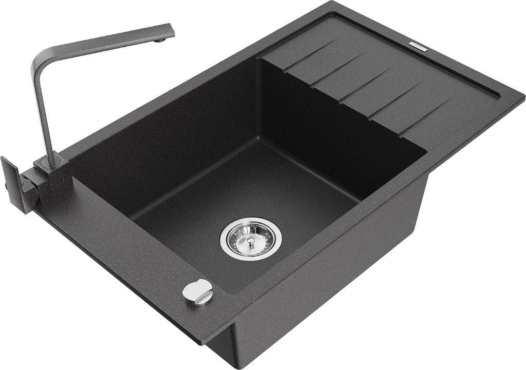 Technické dáta: drez: Rozmer: 795 x 480 x 200 mm Hĺbka komory: 190 mm Rozmery komory: 465x420 mm Priemer odtoku: ø90 mm Typ: 1-miska s krátkym odkvapkávačom Typ: Zapustené do pracovnej dosky Farba: Škvrnitá čierna Povrchová úprava sifónu: Chrome Materiál: žula (80% žulové kamenivo, 20% živice) Prepadový otvor: Áno Otvory: (batérie, automatické) 2 Inštalácia: Univerzálna, je možné inštalovať s odkvapkávačom na ľavú alebo pravú stranu Vysoká odolnosť proti poškriabaniu a zmene farby Odolnosť proti tepelným šokom Ľahko čistiteľný povrch Jeden dodatočný vyfrézovaný otvor na samodierovanie ø35 kuchynská batéria: Materiál: mosadz Farba: Škvrnitá čierna Hlava: Keramická Prevzdušňovač: Áno Typ: Jedna páka Výška batérie: 290 mm Rozsah výtoku: 220 mm(GT) Ean: 5905315019714
