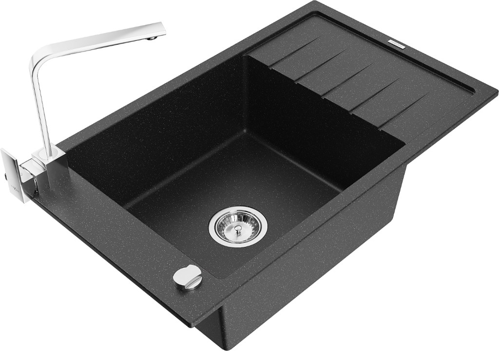 Technické dáta: drez: Rozmer: 795 x 480 x 200 mm Hĺbka komory: 190 mm Rozmery komory: 465x420 mm Priemer odtoku: ø90 mm Typ: 1-miska s krátkym odkvapkávačom Typ: Zapustené do pracovnej dosky Farba: čierna/strieborná metalíza Povrchová úprava sifónu: Chrome Materiál: žula (80% žulové kamenivo, 20% živice) Prepadový otvor: Áno Otvory: (batérie, automatické) 2 Inštalácia: Univerzálna, je možné inštalovať s odkvapkávačom na ľavú alebo pravú stranu Vysoká odolnosť proti poškriabaniu a zmene farby Odolnosť proti tepelným šokom Ľahko čistiteľný povrch Jeden dodatočný vyfrézovaný otvor na samodierovanie ø35 kuchynská batéria: Materiál: mosadz Farba: Chrome Hlava: Keramická Prevzdušňovač: Áno Typ: Jedna páka Výška batérie: 290 mm Rozsah výtoku: 220 mm(GT) Ean: 5905315019585