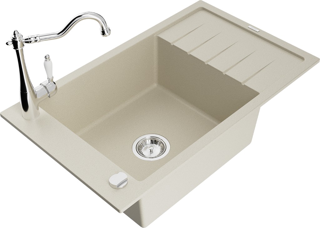 Technické dáta: drez: Rozmer: 795 x 480 x 200 mm Hĺbka komory: 190 mm Rozmery komory: 465x420 mm Priemer odtoku: ø90 mm Typ: 1-miska s krátkym odkvapkávačom Typ: Zapustené do pracovnej dosky Farba béžová Povrchová úprava sifónu: Chrome Materiál: žula (80% žulové kamenivo, 20% živice) Prepadový otvor: Áno Otvory: (batérie, automatické) 2 Inštalácia: Univerzálna, je možné inštalovať s odkvapkávačom na ľavú alebo pravú stranu Vysoká odolnosť proti poškriabaniu a zmene farby Odolnosť proti tepelným šokom Ľahko čistiteľný povrch Jeden dodatočný vyfrézovaný otvor na samodierovanie ø35 kuchynská batéria: Materiál: mosadz Farba: Chrome Hlava: Keramická Prevzdušňovač: Áno Typ: Jedna páka Výška batérie: 290 mm Rozsah výtoku: 260 mm(GT) Ean: 5905315039989