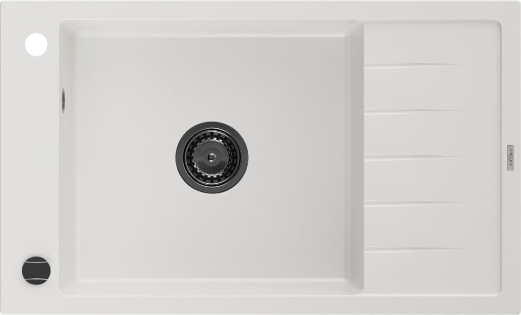 Technické dáta: Rozmer: 795 x 480 x 200 mm Hĺbka komory: 190 mm Rozmery komory: 465x420 mm Priemer odtoku: ø90 mm Typ: 1-miska s krátkym odkvapkávačom Typ: Zapustené do pracovnej dosky Materiál: žula biela farba Povrchová úprava sifónu: čierna Prepadový otvor: Áno Otvor pre batériu: Áno Vrátane automatického sifónu Vysoká odolnosť proti poškriabaniu a zmene farby Odolnosť proti tepelným šokom Ľahko čistiteľný povrch Jeden dodatočný vyfrézovaný otvor na samodierovanie ø35 (GT) Ean: 5905315013163