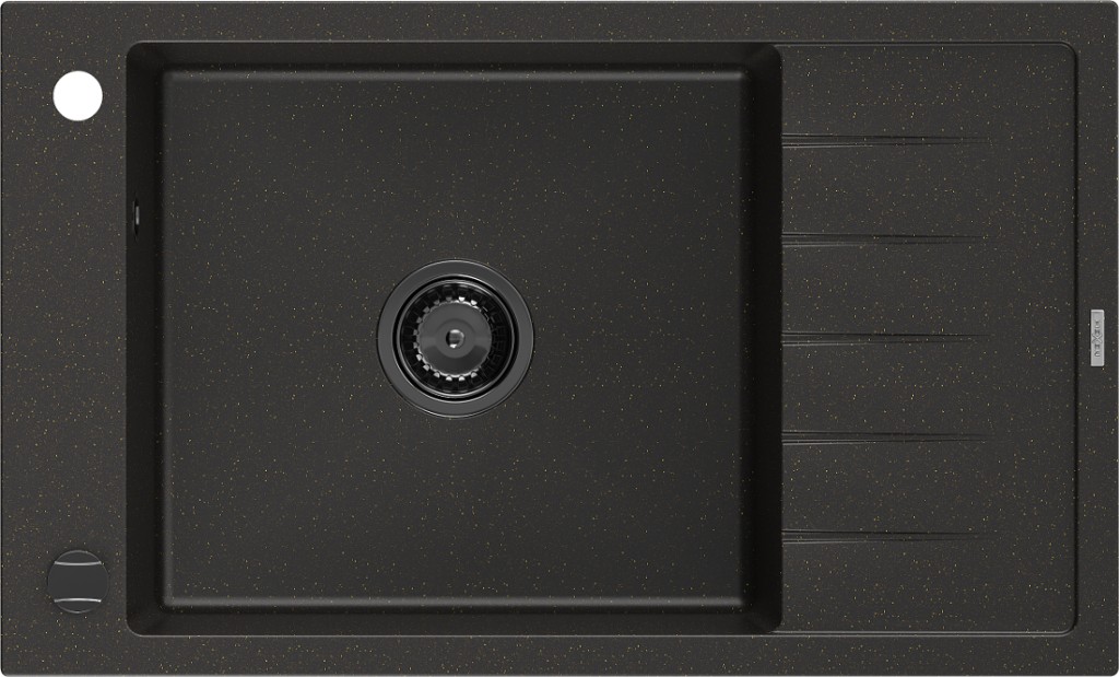 Technické dáta: Rozmer: 795 x 480 x 200 mm Hĺbka komory: 190 mm Rozmery komory: 465x420 mm Priemer odtoku: ø90 mm Typ: 1-miska s krátkym odkvapkávačom Typ: Zapustené do pracovnej dosky Materiál: žula Farba: čierna / zlatá metalíza Povrchová úprava sifónu: čierna Prepadový otvor: Áno Otvor pre batériu: Áno Vrátane automatického sifónu Vysoká odolnosť proti poškriabaniu a zmene farby Odolnosť proti tepelným šokom Ľahko čistiteľný povrch Jeden dodatočný vyfrézovaný otvor na samodierovanie ø35 (GT) Ean: 5905315013200