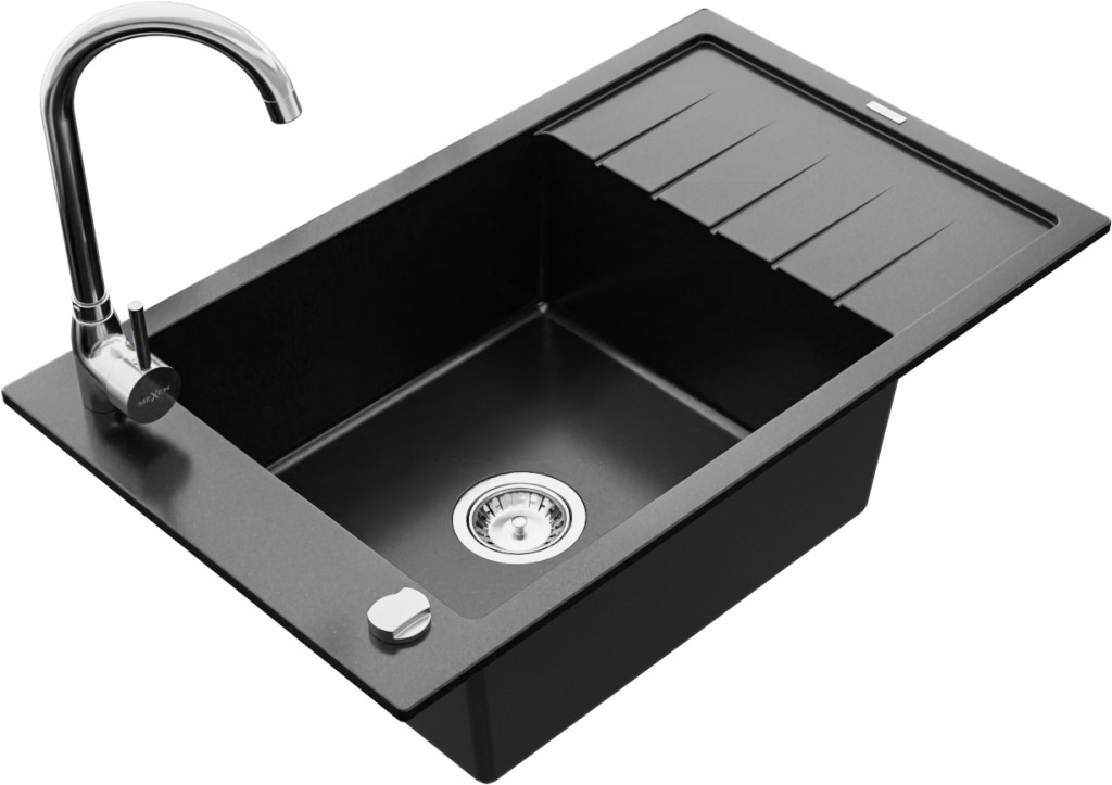 Technické dáta: drez: Rozmer: 795 x 480 x 200 mm Hĺbka komory: 190 mm Rozmery komory: 465x420 mm Priemer odtoku: ø90 mm Typ: 1-miska s krátkym odkvapkávačom Typ: Zapustené do pracovnej dosky Čierna farba Povrchová úprava sifónu: Chrome Materiál: žula (80% žulové kamenivo, 20% živice) Prepadový otvor: Áno Otvory: (batérie, automatické) 2 Inštalácia: Univerzálna, je možné inštalovať s odkvapkávačom na ľavú alebo pravú stranu Vysoká odolnosť proti poškriabaniu a zmene farby Odolnosť proti tepelným šokom Ľahko čistiteľný povrch Jeden dodatočný vyfrézovaný otvor na samodierovanie ø35 kuchynská batéria: Materiál: mosadz Farba: Chrome Hlava: Keramická Prevzdušňovač: Áno Výška batérie: 335 mm Rozsah výtoku: 180 mm (GT) Ean: 5907709160439