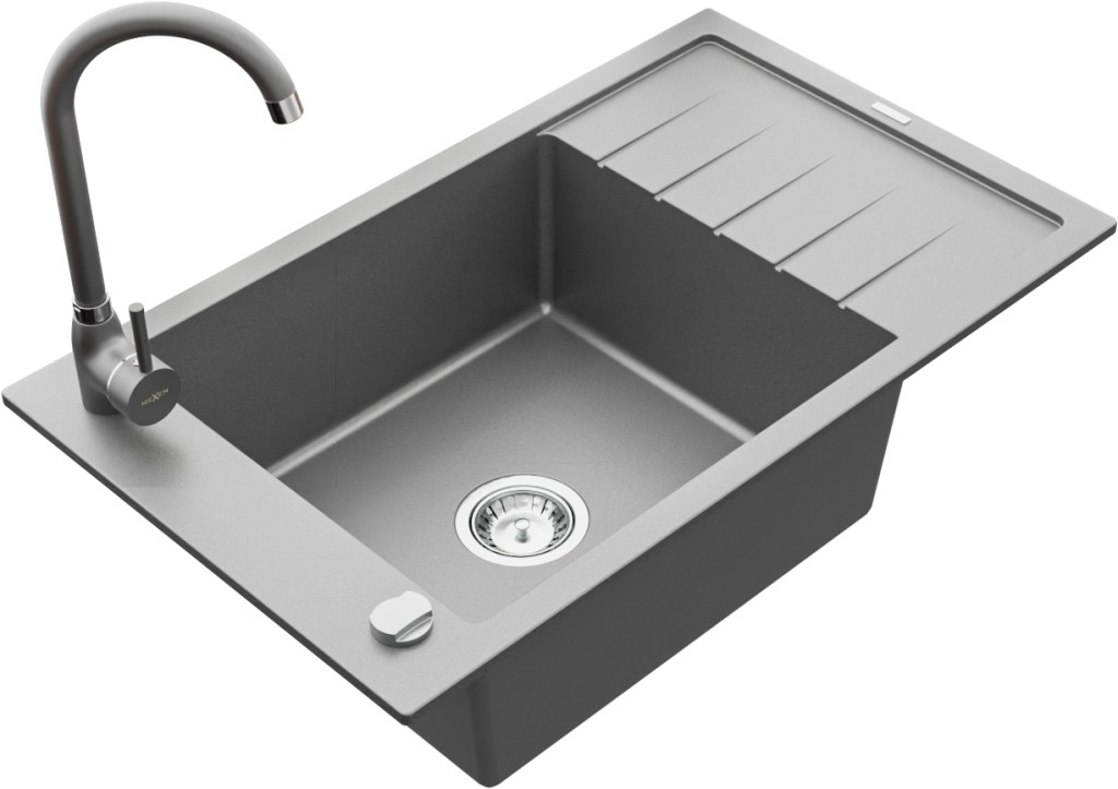 Technické dáta: drez: Rozmer: 795 x 480 x 200 mm Hĺbka komory: 190 mm Rozmery komory: 465x420 mm Priemer odtoku: ø90 mm Typ: 1-miska s krátkym odkvapkávačom Typ: Zapustené do pracovnej dosky Šedá farba Povrchová úprava sifónu: Chrome Materiál: žula (80% žulové kamenivo, 20% živice) Prepadový otvor: Áno Otvory: (batérie, automatické) 2 Inštalácia: Univerzálna, je možné inštalovať s odkvapkávačom na ľavú alebo pravú stranu Vysoká odolnosť proti poškriabaniu a zmene farby Odolnosť proti tepelným šokom Ľahko čistiteľný povrch Jeden dodatočný vyfrézovaný otvor na samodierovanie ø35 kuchynská batéria: Materiál: mosadz Šedá farba Hlava: Keramická Prevzdušňovač: Áno Výška batérie: 335 mm Rozsah výtoku: 180 mm(GT) Ean: 5907709160354