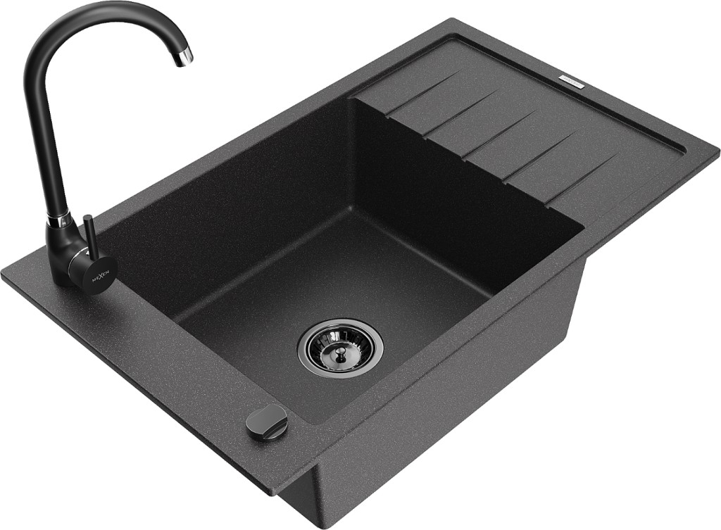 Technické dáta: drez: Rozmer: 795 x 480 x 200 mm Hĺbka komory: 190 mm Rozmery komory: 465x420 mm Priemer odtoku: ø90 mm Typ: 1-miska s krátkym odkvapkávačom Typ: Zapustené do pracovnej dosky Farba: Škvrnitá čierna Povrchová úprava sifónu: čierna Materiál: žula (80% žulové kamenivo, 20% živice) Prepadový otvor: Áno Otvory: (batérie, automatické) 2 Inštalácia: Univerzálna, je možné inštalovať s odkvapkávačom na ľavú alebo pravú stranu Vysoká odolnosť proti poškriabaniu a zmene farby Odolnosť proti tepelným šokom Ľahko čistiteľný povrch Jeden dodatočný vyfrézovaný otvor na samodierovanie ø35 kuchynská batéria: Materiál: mosadz Čierna farba Hlava: Keramická Prevzdušňovač: Áno Typ: Jedna páka Výška batérie: 335 mm Rozsah výtoku: 180 mm(GT) Ean: 5905315015228