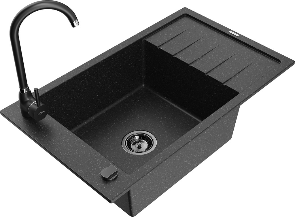 Technické dáta: drez: Rozmer: 795 x 480 x 200 mm Hĺbka komory: 190 mm Rozmery komory: 465x420 mm Priemer odtoku: ø90 mm Typ: 1-miska s krátkym odkvapkávačom Typ: Zapustené do pracovnej dosky Farba: čierna/strieborná metalíza Povrchová úprava sifónu: čierna Materiál: žula (80% žulové kamenivo, 20% živice) Prepadový otvor: Áno Otvory: (batérie, automatické) 2 Inštalácia: Univerzálna, je možné inštalovať s odkvapkávačom na ľavú alebo pravú stranu Vysoká odolnosť proti poškriabaniu a zmene farby Odolnosť proti tepelným šokom Ľahko čistiteľný povrch Jeden dodatočný vyfrézovaný otvor na samodierovanie ø35 kuchynská batéria: Materiál: mosadz Čierna farba Hlava: Keramická Prevzdušňovač: Áno Typ: Jedna páka Výška batérie: 335 mm Rozsah výtoku: 180 mm(GT) Ean: 5905315015167