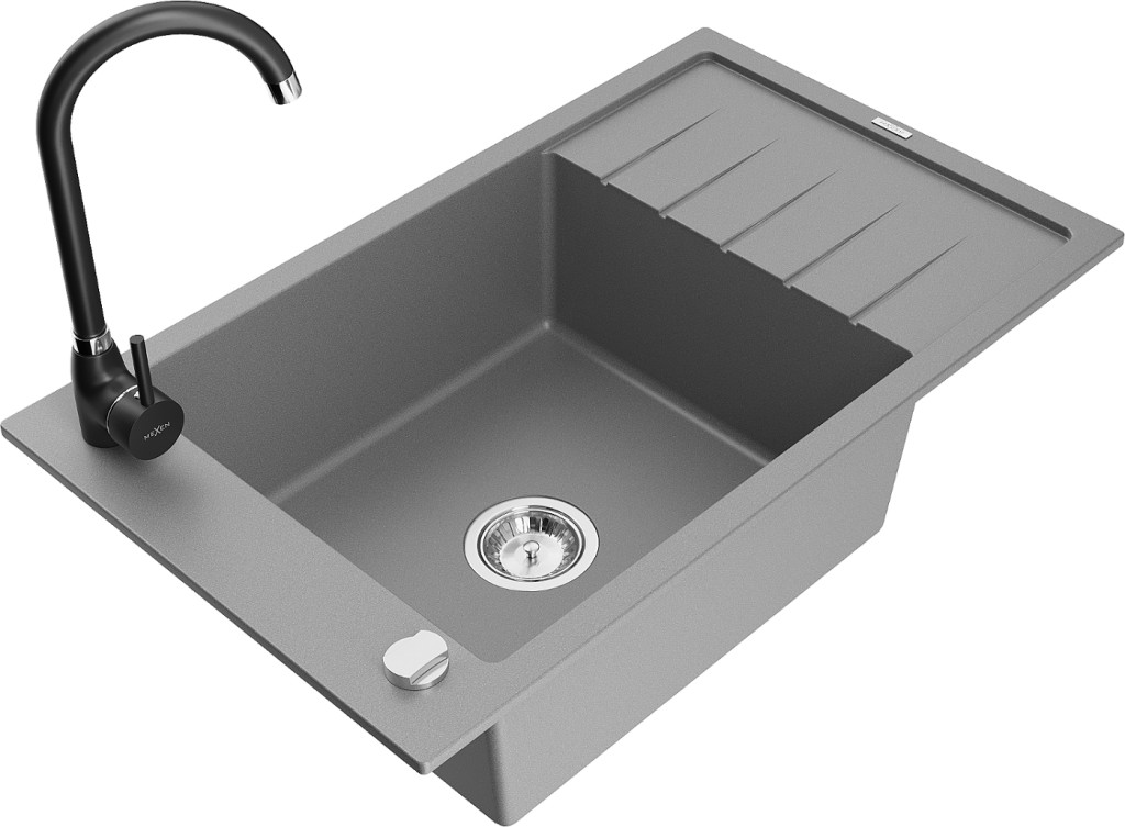 Technické dáta: drez: Rozmer: 795 x 480 x 200 mm Hĺbka komory: 190 mm Rozmery komory: 465x420 mm Priemer odtoku: ø90 mm Typ: 1-miska s krátkym odkvapkávačom Typ: Zapustené do pracovnej dosky Šedá farba Povrchová úprava sifónu: Chrome Materiál: žula (80% žulové kamenivo, 20% živice) Prepadový otvor: Áno Otvory: (batérie, automatické) 2 Inštalácia: Univerzálna, je možné inštalovať s odkvapkávačom na ľavú alebo pravú stranu Vysoká odolnosť proti poškriabaniu a zmene farby Odolnosť proti tepelným šokom Ľahko čistiteľný povrch Jeden dodatočný vyfrézovaný otvor na samodierovanie ø35 kuchynská batéria: Materiál: mosadz Čierna farba Hlava: Keramická Prevzdušňovač: Áno Typ: Jedna páka Výška batérie: 335 mm Rozsah výtoku: 180 mm(GT) Ean: 5905315015136