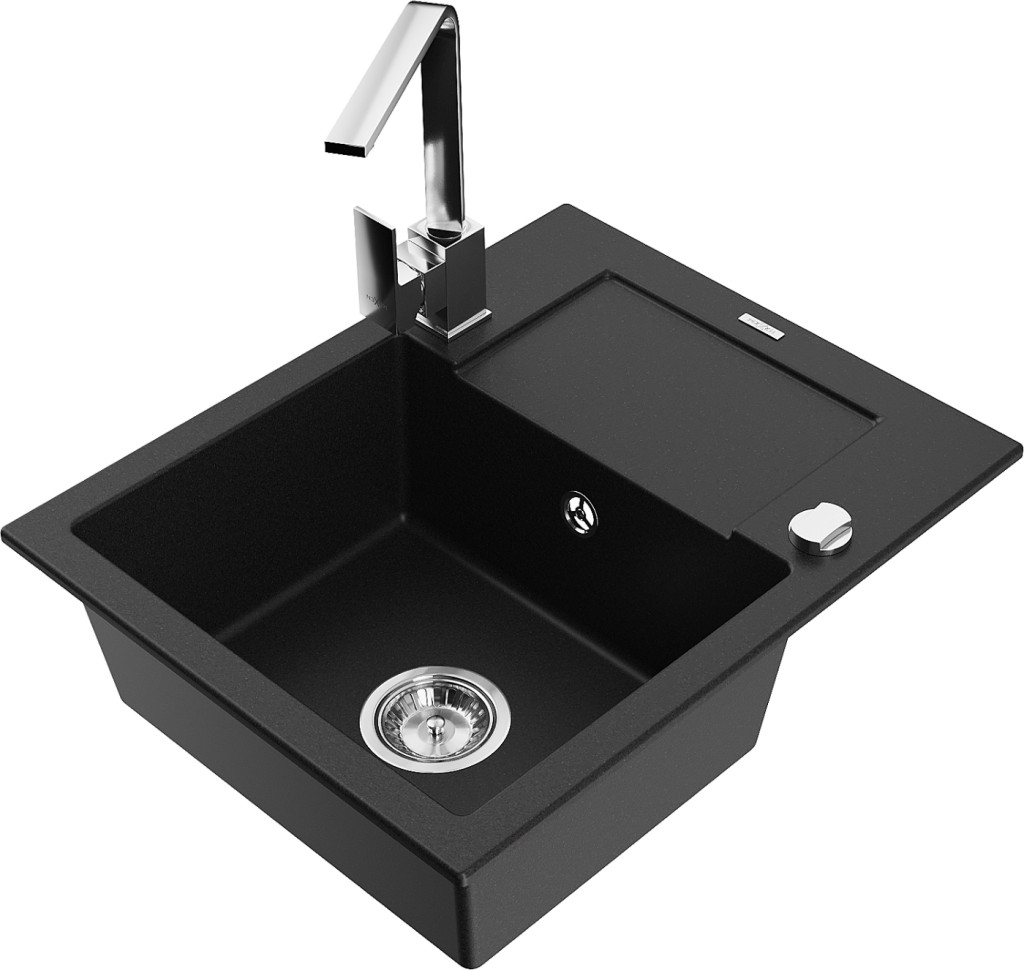 Technické dáta: drez: Rozmer: 576x465x174mm Hĺbka komory: 164 mm Rozmery komory: 395x320 mm Priemer odtoku: ø90 mm Typ: 1-miska s krátkym odkvapkávačom Typ: Zapustené do pracovnej dosky Čierna farba Povrchová úprava sifónu: Chrome Materiál: žula (80% žulové kamenivo, 20% živice) Prepadový otvor: Áno Otvory: (batérie, automatické) 2 Inštalácia: Univerzálna, je možné inštalovať s odkvapkávačom na ľavú alebo pravú stranu Vysoká odolnosť proti poškriabaniu a zmene farby Odolnosť proti tepelným šokom Ľahko čistiteľný povrch Dva dodatočné vyfrézované otvory na samodierovanie ø35 kuchynská batéria: Materiál: mosadz Farba: Chrome Hlava: Keramická Prevzdušňovač: Áno Typ: Jedna páka Výška batérie: 290 mm Rozsah výtoku: 220 mm(GT) Ean: 5905315018762