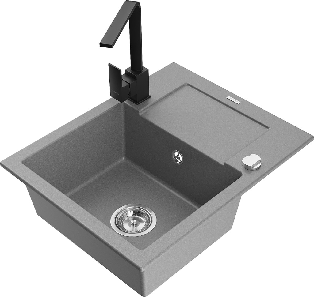 Technické dáta: drez: Rozmer: 576x465x174mm Hĺbka komory: 164 mm Rozmery komory: 395x320 mm Priemer odtoku: ø90 mm Typ: 1-miska s krátkym odkvapkávačom Typ: Zapustené do pracovnej dosky Šedá farba Povrchová úprava sifónu: Chrome Materiál: žula (80% žulové kamenivo, 20% živice) Prepadový otvor: Áno Otvory: (batérie, automatické) 2 Inštalácia: Univerzálna, je možné inštalovať s odkvapkávačom na ľavú alebo pravú stranu Vysoká odolnosť proti poškriabaniu a zmene farby Odolnosť proti tepelným šokom Ľahko čistiteľný povrch Dva dodatočné vyfrézované otvory na samodierovanie ø35 kuchynská batéria: Materiál: mosadz Čierna farba Hlava: Keramická Prevzdušňovač: Áno Typ: Jedna páka Výška batérie: 290 mm Rozsah výtoku: 220 mm(GT) Ean: 5905315018595