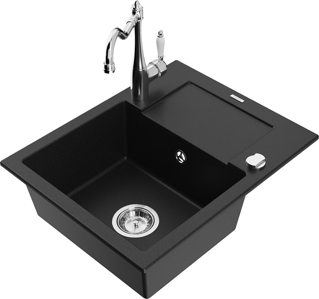 Technické dáta: drez: Rozmer: 576x465x174mm Hĺbka komory: 164 mm Rozmery komory: 395x320 mm Priemer odtoku: ø90 mm Typ: 1-miska s krátkym odkvapkávačom Typ: Zapustené do pracovnej dosky Čierna farba Povrchová úprava sifónu: Chrome Materiál: žula (80% žula 20% živice) Prepadový otvor: Áno Otvory: (batérie, automatické) 2 Inštalácia: Univerzálna, je možné inštalovať s odkvapkávačom na ľavú alebo pravú stranu Vysoká odolnosť proti poškriabaniu a zmene farby Odolnosť proti tepelným šokom Ľahko čistiteľný povrch Dva dodatočné vyfrézované otvory na samodierovanie ø35 kuchynská batéria: Materiál: mosadz Farba: Chrome Hlava: Keramická Prevzdušňovač: Áno Typ: Jedna páka Výška batérie: 290 mm Rozsah výtoku: 260 mm(GT) Ean: 5905315039255