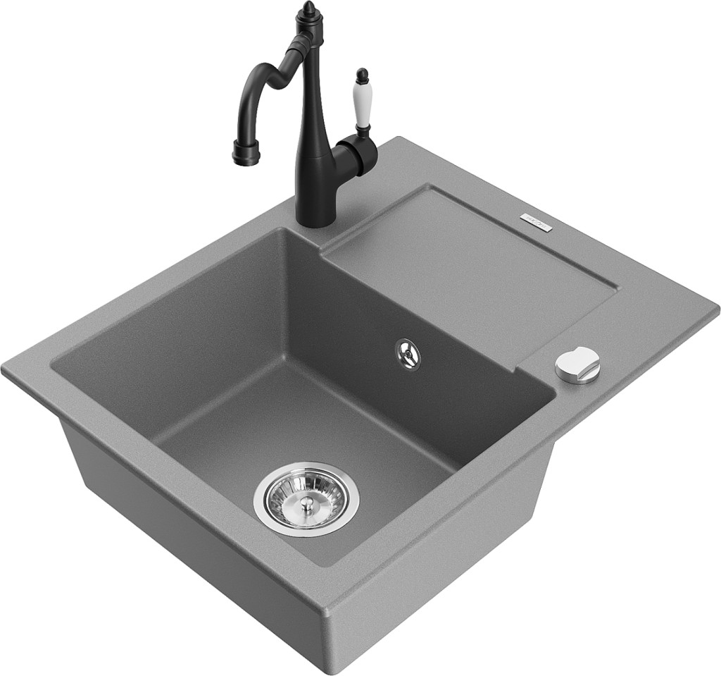 Technické dáta: drez: Rozmer: 576x465x174mm Hĺbka komory: 164 mm Rozmery komory: 395x320 mm Priemer odtoku: ø90 mm Typ: 1-miska s krátkym odkvapkávačom Typ: Zapustené do pracovnej dosky Šedá farba Povrchová úprava sifónu: Chrome Materiál: žula (80% žulové kamenivo, 20% živice) Prepadový otvor: Áno Otvory: (batérie, automatické) 2 Inštalácia: Univerzálna, je možné inštalovať s odkvapkávačom na ľavú alebo pravú stranu Vysoká odolnosť proti poškriabaniu a zmene farby Odolnosť proti tepelným šokom Ľahko čistiteľný povrch Dva dodatočné vyfrézované otvory na samodierovanie ø35 kuchynská batéria: Materiál: mosadz Čierna farba Hlava: Keramická Prevzdušňovač: Áno Typ: Jedna páka Výška batérie: 290 mm Rozsah výtoku: 260 mm(GT) Ean: 5905315039088