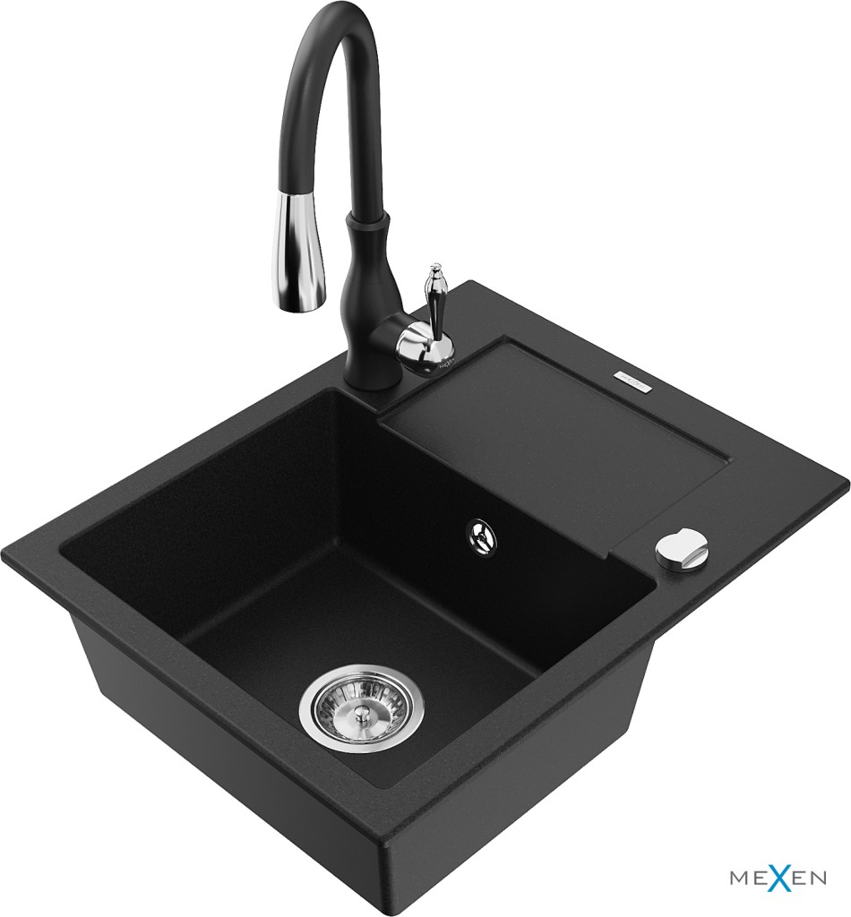 Technické dáta: drez: Rozmer: 576x465x174mm Hĺbka komory: 164 mm Rozmery komory: 395x320 mm Priemer odtoku: ø90 mm Typ: 1-miska s krátkym odkvapkávačom Typ: Zapustené do pracovnej dosky Čierna farba Povrchová úprava sifónu: Chrome Materiál: žula (80% žulové kamenivo, 20% živice) Prepadový otvor: Áno Otvory: (batérie, automatické) 2 Inštalácia: Univerzálna, je možné inštalovať s odkvapkávačom na ľavú alebo pravú stranu Vysoká odolnosť proti poškriabaniu a zmene farby Odolnosť proti tepelným šokom Ľahko čistiteľný povrch Dva dodatočné vyfrézované otvory na samodierovanie ø35 kuchynská batéria: Materiál: mosadz Čierna farba Hlava: Keramická Prevzdušňovač: Áno Typ: Jedna páka Výška batérie: 410 mm Rozsah výtoku: 231 mm(GT) Ean: 5905315034168