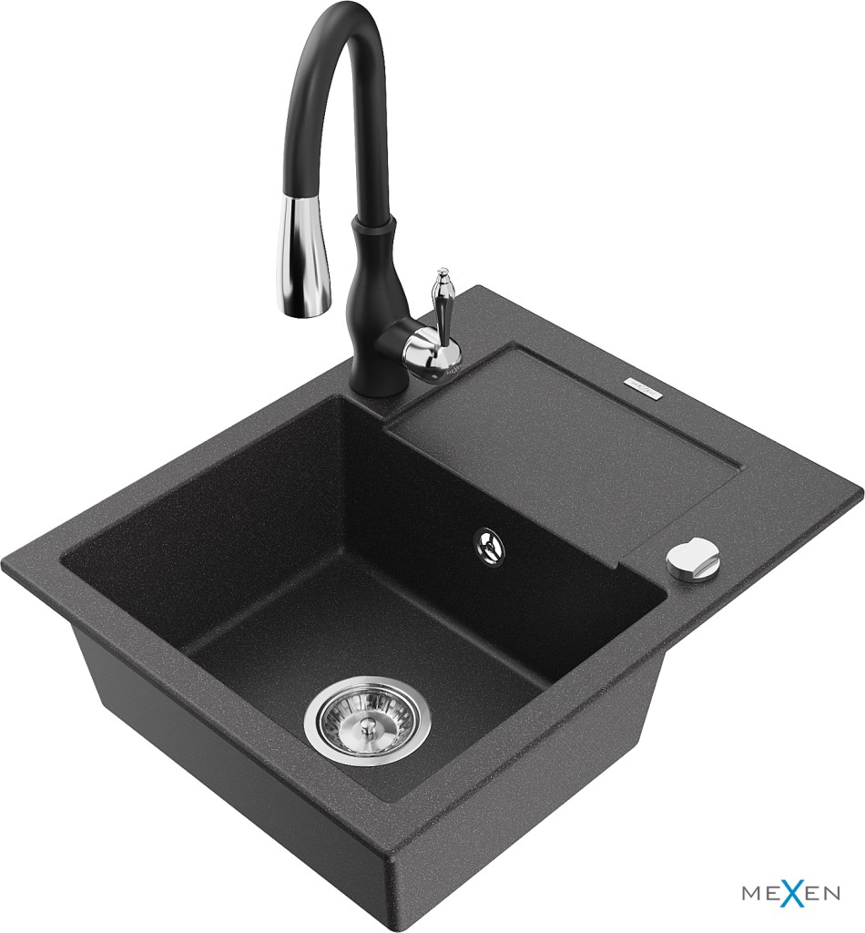 Technické dáta: drez: Rozmer: 576x465x174mm Hĺbka komory: 164 mm Rozmery komory: 395x320 mm Priemer odtoku: ø90 mm Typ: 1-miska s krátkym odkvapkávačom Typ: Zapustené do pracovnej dosky Farba: Škvrnitá čierna Povrchová úprava sifónu: Chrome Materiál: žula (80% žulové kamenivo, 20% živice) Prepadový otvor: Áno Otvory: (batérie, automatické) 2 Inštalácia: Univerzálna, je možné inštalovať s odkvapkávačom na ľavú alebo pravú stranu Vysoká odolnosť proti poškriabaniu a zmene farby Odolnosť proti tepelným šokom Ľahko čistiteľný povrch Dva dodatočné vyfrézované otvory na samodierovanie ø35 kuchynská batéria: Materiál: mosadz Čierna farba Hlava: Keramická Prevzdušňovač: Áno Typ: Jedna páka Výška batérie: 410 mm Rozsah výtoku: 231 mm(GT) Ean: 5905315034090