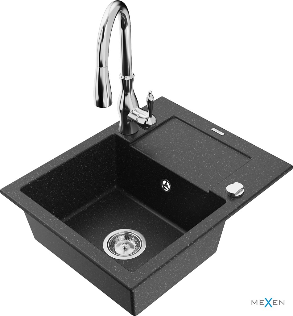 Technické dáta: drez: Rozmer: 576x465x174mm Hĺbka komory: 164 mm Rozmery komory: 395x320 mm Priemer odtoku: ø90 mm Typ: 1-miska s krátkym odkvapkávačom Typ: Zapustené do pracovnej dosky Farba: čierna/strieborná metalíza Povrchová úprava sifónu: Chrome Materiál: žula (80% žulové kamenivo, 20% živice) Prepadový otvor: Áno Otvory: (batérie, automatické) 2 Inštalácia: Univerzálna, je možné inštalovať s odkvapkávačom na ľavú alebo pravú stranu Vysoká odolnosť proti poškriabaniu a zmene farby Odolnosť proti tepelným šokom Ľahko čistiteľný povrch Dva dodatočné vyfrézované otvory na samodierovanie ø35 kuchynská batéria: Materiál: mosadz Farba: Chrome Hlava: Keramická Prevzdušňovač: Áno Typ: Jedna páka Výška batérie: 410 mm Rozsah výtoku: 231 mm(GT) Ean: 5905315033987