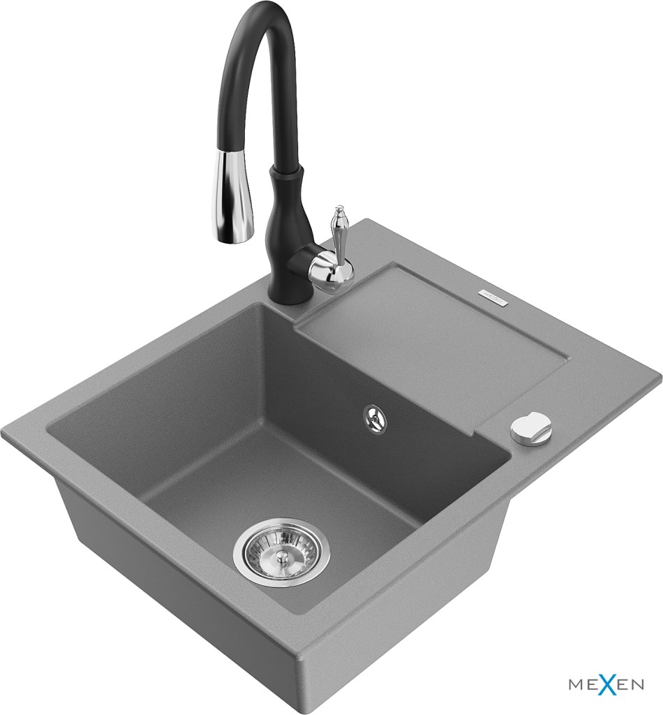 Technické dáta: drez: Rozmer: 576x465x174mm Hĺbka komory: 164 mm Rozmery komory: 395x320 mm Priemer odtoku: ø90 mm Typ: 1-miska s krátkym odkvapkávačom Typ: Zapustené do pracovnej dosky Šedá farba Povrchová úprava sifónu: Chrome Materiál: žula (80% žulové kamenivo, 20% živice) Prepadový otvor: Áno Otvory: (batérie, automatické) 2 Inštalácia: Univerzálna, je možné inštalovať s odkvapkávačom na ľavú alebo pravú stranu Vysoká odolnosť proti poškriabaniu a zmene farby Odolnosť proti tepelným šokom Ľahko čistiteľný povrch Dva dodatočné vyfrézované otvory na samodierovanie ø35 kuchynská batéria: Materiál: mosadz Čierna farba Hlava: Keramická Prevzdušňovač: Áno Typ: Jedna páka Výška batérie: 410 mm Rozsah výtoku: 231 mm(GT) Ean: 5905315033956