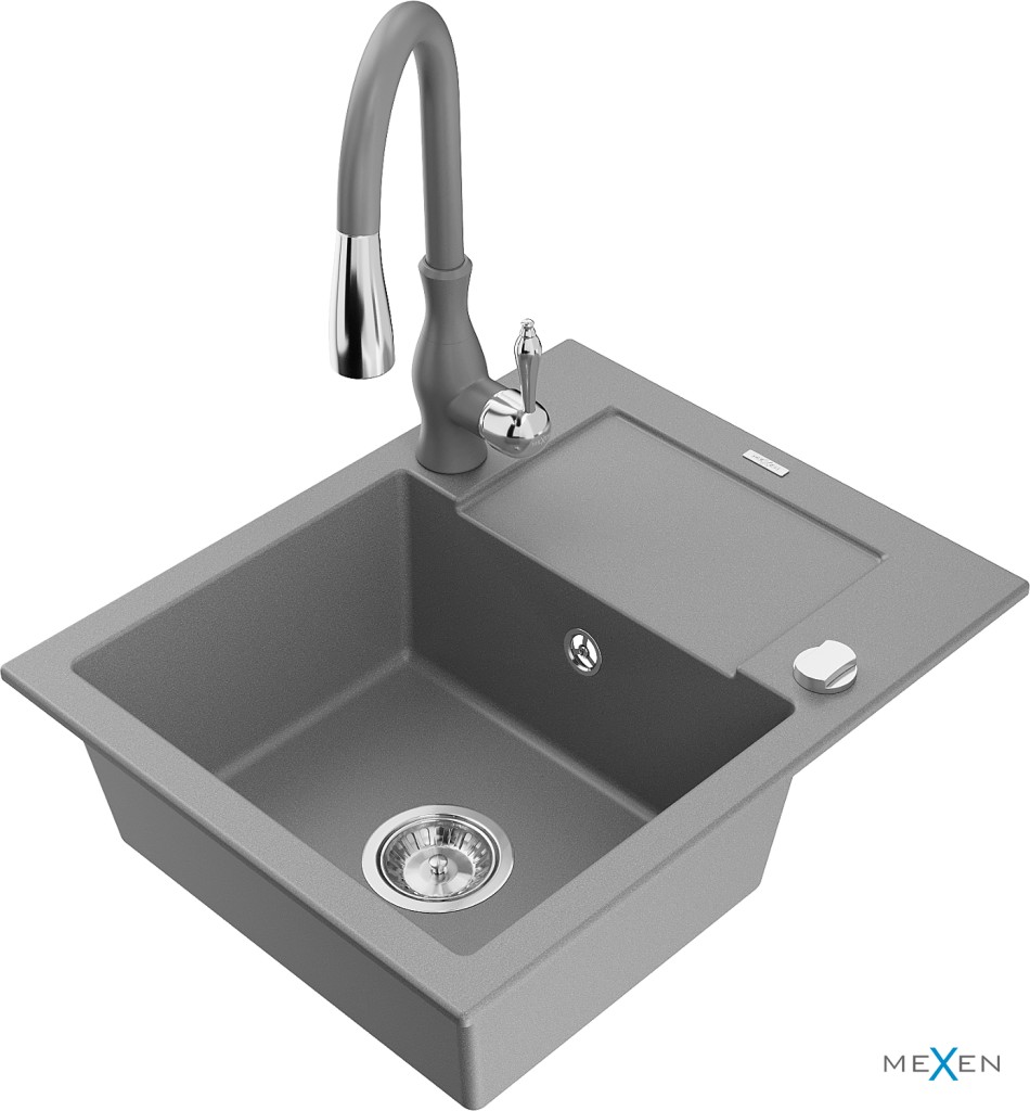 Technické dáta: drez: Rozmer: 576x465x174mm Hĺbka komory: 164 mm Rozmery komory: 395x320 mm Priemer odtoku: ø90 mm Typ: 1-miska s krátkym odkvapkávačom Typ: Zapustené do pracovnej dosky Šedá farba Povrchová úprava sifónu: Chrome Materiál: žula (80% žulové kamenivo, 20% živice) Prepadový otvor: Áno Otvory: (batérie, automatické) 2 Inštalácia: Univerzálna, je možné inštalovať s odkvapkávačom na ľavú alebo pravú stranu Vysoká odolnosť proti poškriabaniu a zmene farby Odolnosť proti tepelným šokom Ľahko čistiteľný povrch Dva dodatočné vyfrézované otvory na samodierovanie ø35 kuchynská batéria: Materiál: mosadz Šedá farba Hlava: Keramická Prevzdušňovač: Áno Typ: Jedna páka Výška batérie: 410 mm Rozsah výtoku: 231 mm(GT) Ean: 5905315033970