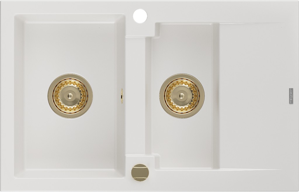 Technické dáta: Rozmer: 737x475x177mm Hĺbka komory: 167 mm (väčšia), 107 mm (menšia) Rozmery komory: 395x272 mm (väčšie), 375x182 mm (menšie) Priemer odtoku: ø90 mm Typ: 1,5-komorový s krátkym odkvapkávačom Typ: Zapustené do pracovnej dosky Materiál: žula biela farba Povrchová úprava sifónu: zlatá Prepadový otvor: Áno Otvor pre batériu: Áno Vrátane automatického sifónu Vysoká odolnosť proti poškriabaniu a zmene farby Odolnosť proti tepelným šokom Ľahko čistiteľný povrch(GT) Ean: 5905315011763