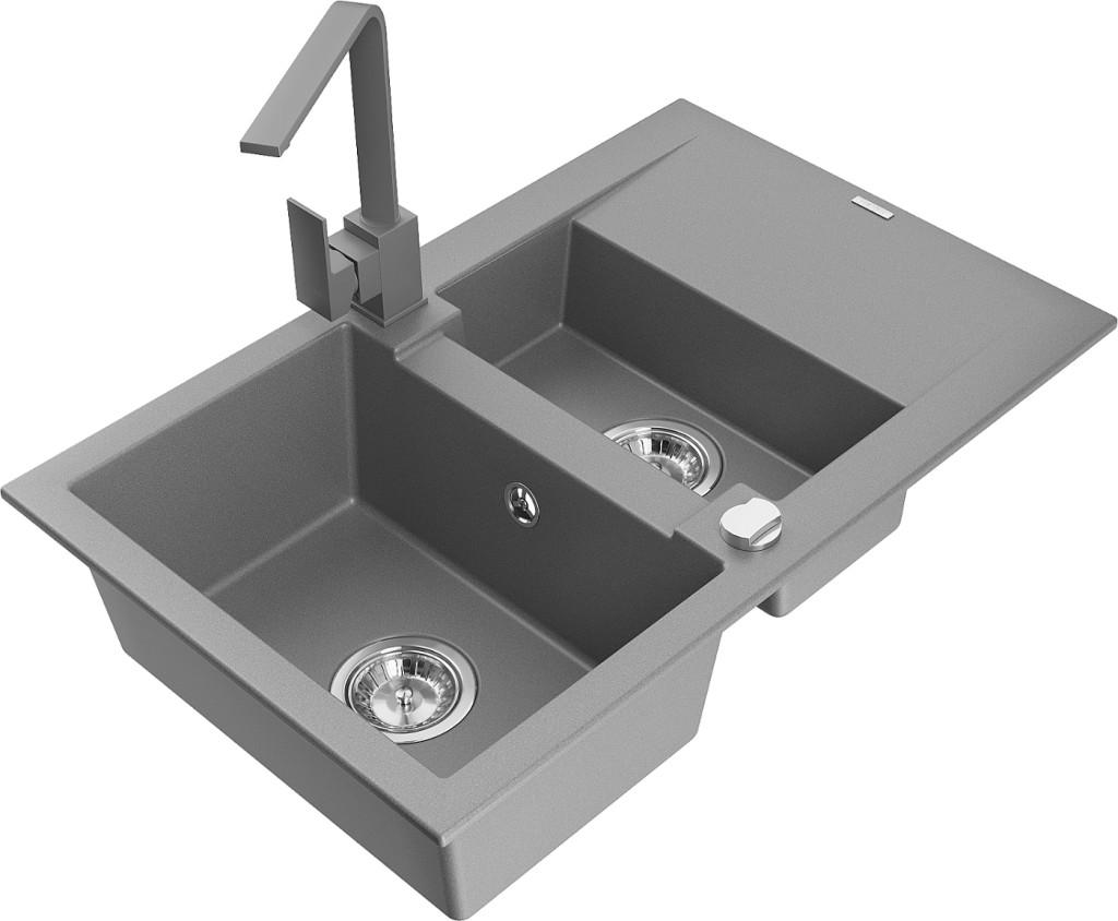 Technické dáta: Drez: Rozmer: 737x475x177 mm Hĺbka komory: 167 mm (väčšia), 107 mm (menšia) Rozmery komory: 395x272 mm (väčšie), (menšie) 375x182 mm Priemer odtoku: ø90 mm Typ: 1,5-miska s krátkym odkvapkávačom Typ: Zapustené do pracovnej dosky Šedá farba Povrchová úprava sifónu: Chrome Materiál: žula (80% žulové kamenivo 20% živice) Prepadový otvor: Áno Otvory: (batérie, automat) 2 Inštalácia: Univerzálna, je možné inštalovať s odkvapkávačom na ľavú alebo pravú stranu Vysoká odolnosť proti poškriabaniu a zmene farby Odolnosť proti tepelným šokom Povrch pre ľahké čistenie Kuchynská batéria: Materiál: mosadz Šedá farba Hlava: Keramická Perlátor: Áno Typ: Jednopákové Výška batérie: 290 mm Rozsah výtoku: 220 mm(GT) Ean: 5905315018939