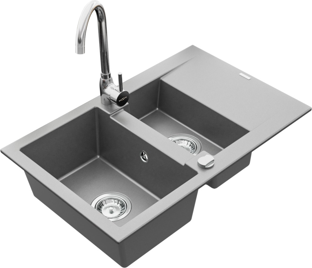 Špecifikácia produktu: Drez: Rozmer: 737x475x177 mm Hĺbka komory: 167 mm (väčšia), 107 mm (menšia) Rozmery komory: 395x272 mm (väčšie), (menšie) 375x182 mm Priemer odtoku: ø90 mm Typ: 1,5-miska s krátkym odkvapkávačom Typ: Zapustené do pracovnej dosky Šedá farba Materiál: žula (80% žulové kamenivo 20% živice) Prepadový otvor: Áno Otvory: (batérie, automat) 2 Inštalácia: Univerzálna, je možné inštalovať s odkvapkávačom na ľavú alebo pravú stranu Vysoká odolnosť proti poškriabaniu a zmene farby Odolnosť proti tepelným šokom Povrch pre ľahké čistenie Kuchynská batéria: Materiál: mosadz Farba: Chrome Hlava: Keramická Perlátor: Áno Výška batérie: 335 mm Rozsah výtoku: 180 mm(GT) Ean: 5907709189881