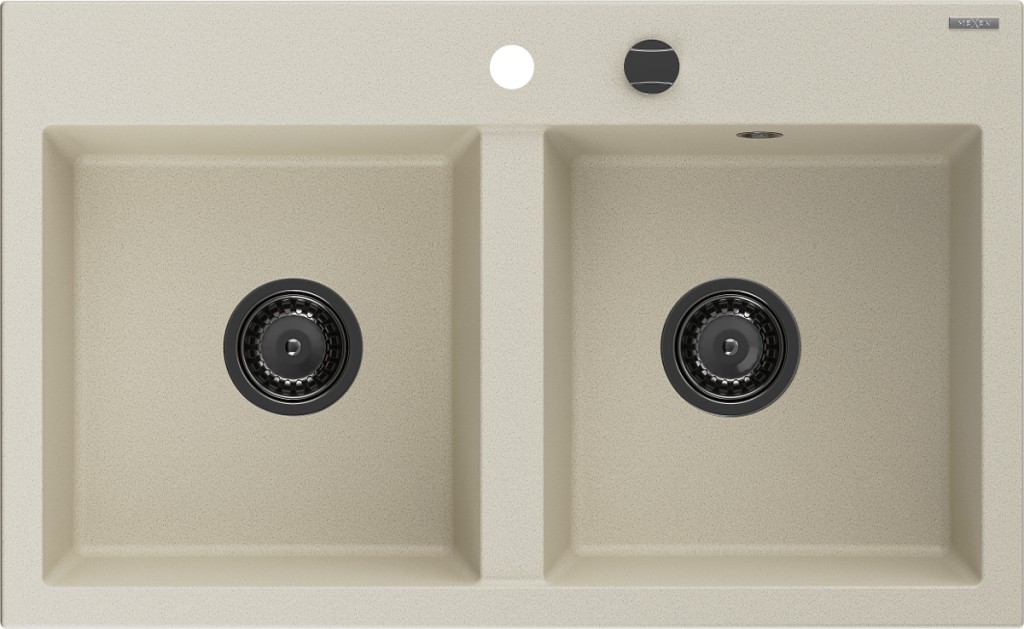 MEXEN/S MEXEN/S - Mario granitový drez 2-bowl vrátane batérie Flora, čierna/strieborná metalík 6504-73-670401-57-B