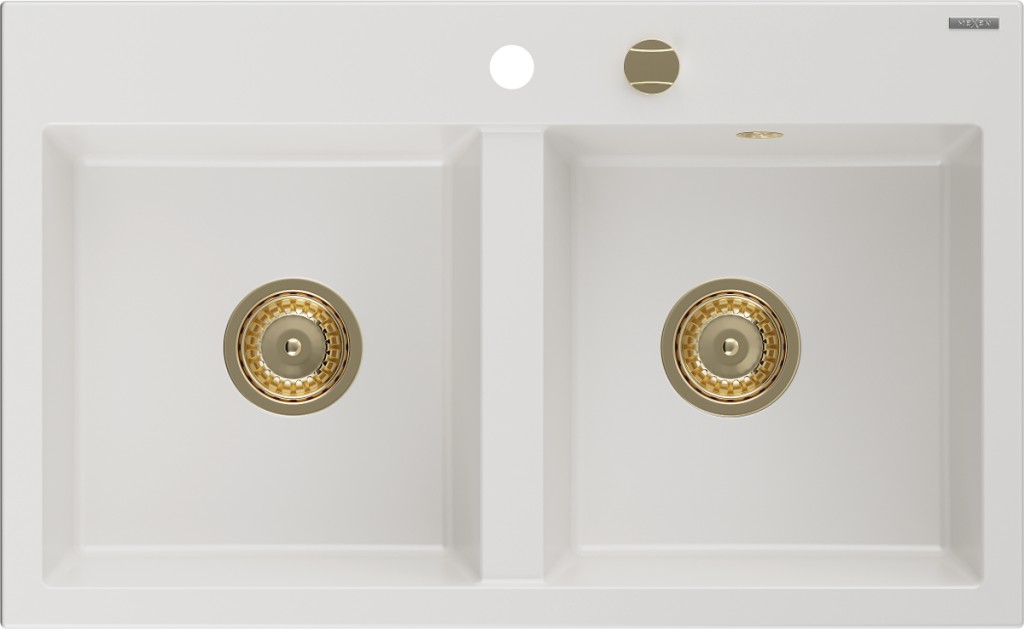 Špecifikácia produktu: Rozmer: 800x490x205 mm Hĺbka komory: 130 mm Rozmery komory: 370x350 mm Priemer odtoku: ø90 mm Typ: 2-komorový Typ: Zapustené do pracovnej dosky Materiál: žula biela farba Povrchová úprava sifónu: zlatá Prepadový otvor: Áno Otvor pre batériu: Áno Vrátane automatického sifónu Vysoká odolnosť proti poškriabaniu a zmene farby Odolnosť proti tepelným šokom Povrch pre ľahké čistenie Jeden dodatočný vyfrézovaný otvor na samodierovanie ø35(GT) Ean: 5905315236395