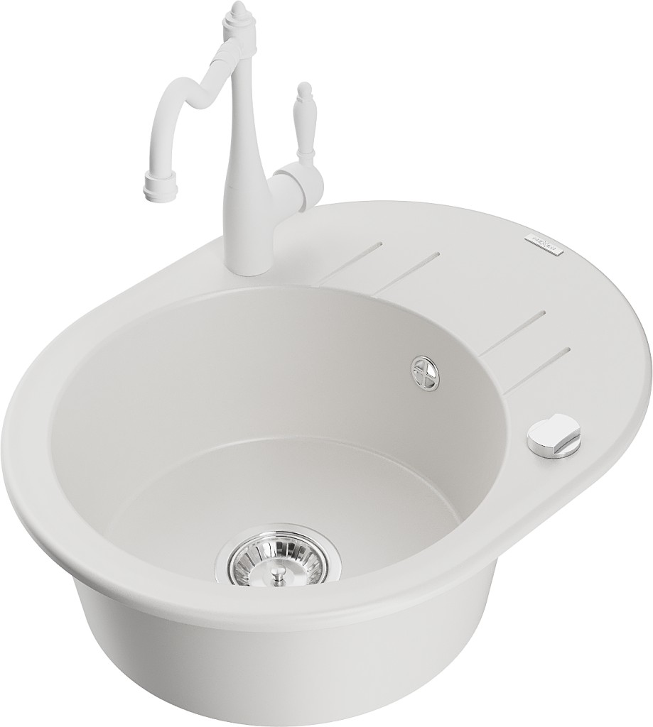 Technické dáta: drez: Rozmer: 586 x 458 x 190 mm Hĺbka komory: 180 mm Šírka komory: 378x374 mm Priemer odtoku: ø90 mm Typ: 1-miska s krátkym odkvapkávačom Typ: Zapustené do pracovnej dosky biela farba Povrchová úprava sifónu: Chrome Materiál: žula (80% žulové kamenivo, 20% živice) Prepadový otvor: Áno Otvory: (batérie, automatické) 2 Inštalácia: Univerzálna, je možné inštalovať s odkvapkávačom na ľavú alebo pravú stranu Vysoká odolnosť proti poškriabaniu a zmene farby Odolnosť proti tepelným šokom Ľahko čistiteľný povrch Dva dodatočné vyfrézované otvory na samodierovanie ø35 kuchynská batéria: Materiál: mosadz biela farba Hlava: Keramická Prevzdušňovač: Áno Typ: Jedna páka Výška batérie: 290 mm Rozsah výtoku: 260 mm(GT) Ean: 5905315041876