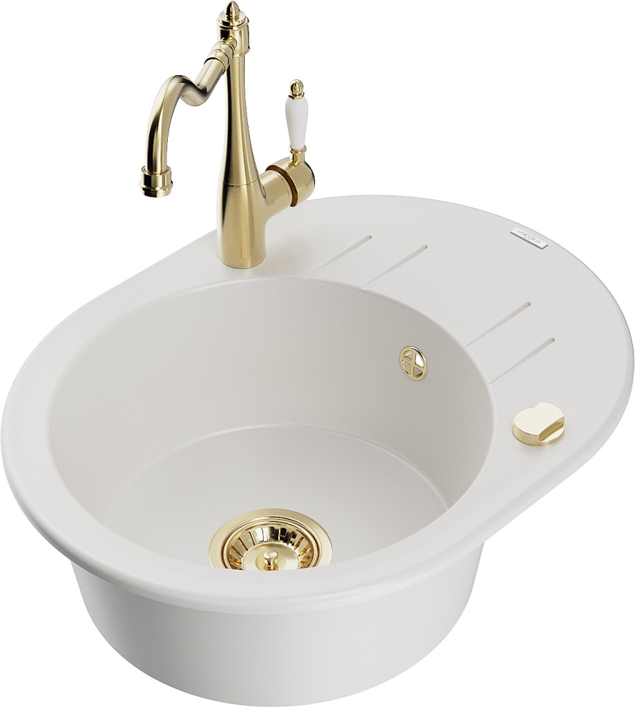 Technické dáta: drez: Rozmer: 586 x 458 x 190 mm Hĺbka komory: 180 mm Šírka komory: 378x374 mm Priemer odtoku: ø90 mm Typ: 1-miska s krátkym odkvapkávačom Typ: Zapustené do pracovnej dosky biela farba Povrchová úprava sifónu: zlatá Materiál: žula (80% žulové kamenivo, 20% živice) Prepadový otvor: Áno Otvory: (batérie, automatické) 2 Inštalácia: Univerzálna, je možné inštalovať s odkvapkávačom na ľavú alebo pravú stranu Vysoká odolnosť proti poškriabaniu a zmene farby Odolnosť proti tepelným šokom Ľahko čistiteľný povrch Dva dodatočné vyfrézované otvory na samodierovanie ø35 kuchynská batéria: Materiál: mosadz Farba: Zlatá Hlava: Keramická Prevzdušňovač: Áno Typ: Jedna páka Výška batérie: 290 mm Rozsah výtoku: 260 mm(GT) Ean: 5905315041883
