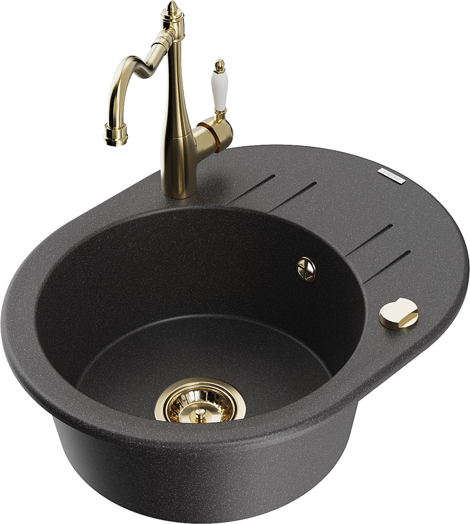 Technické dáta: drez: Rozmer: 586 x 458 x 190 mm Hĺbka komory: 180 mm Šírka komory: 378x374 mm Priemer odtoku: ø90 mm Typ: 1-miska s krátkym odkvapkávačom Typ: Zapustené do pracovnej dosky Farba: Škvrnitá čierna Povrchová úprava sifónu: zlatá Materiál: žula (80% žulové kamenivo, 20% živice) Prepadový otvor: Áno Otvory: (batérie, automatické) 2 Inštalácia: Univerzálna, je možné inštalovať s odkvapkávačom na ľavú alebo pravú stranu Vysoká odolnosť proti poškriabaniu a zmene farby Odolnosť proti tepelným šokom Ľahko čistiteľný povrch Dva dodatočné vyfrézované otvory na samodierovanie ø35 kuchynská batéria: Materiál: mosadz Farba: Zlatá Hlava: Keramická Prevzdušňovač: Áno Typ: Jedna páka Výška batérie: 290 mm Rozsah výtoku: 260 mm(GT) Ean: 5905315042101