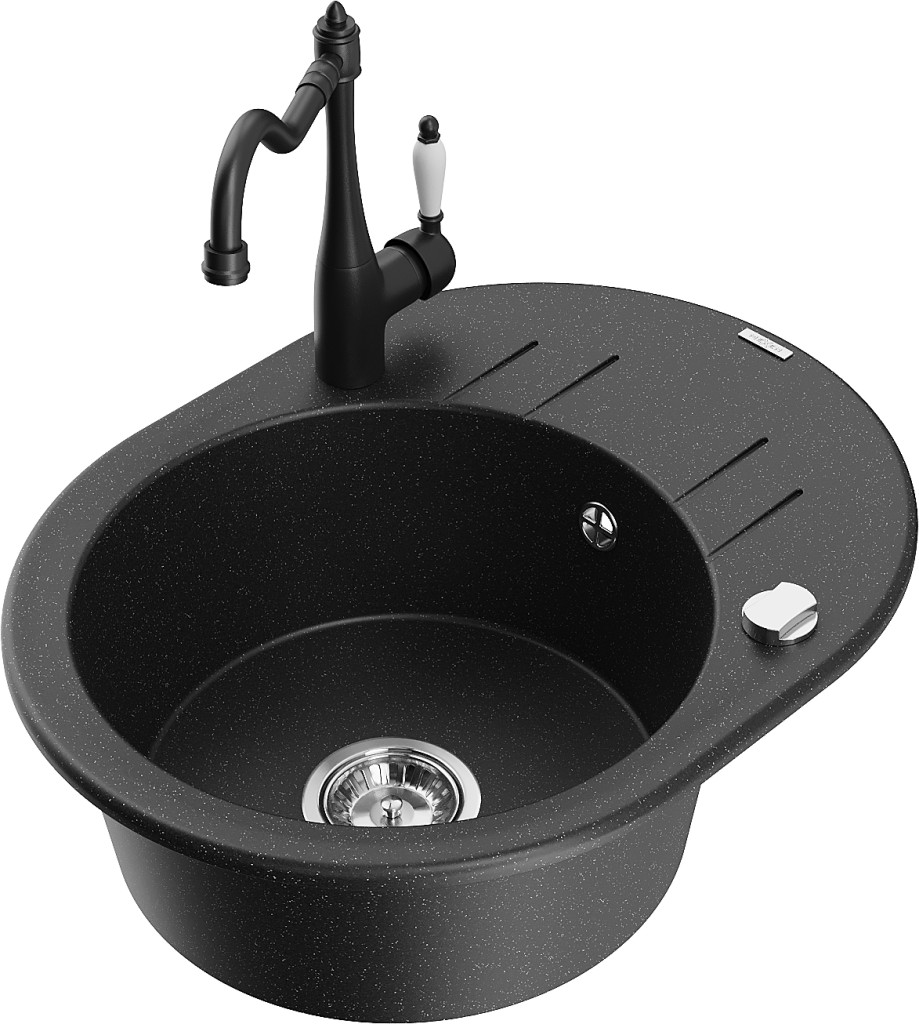 Technické dáta: drez: Rozmer: 586 x 458 x 190 mm Hĺbka komory: 180 mm Šírka komory: 378x374 mm Priemer odtoku: ø90 mm Typ: 1-miska s krátkym odkvapkávačom Typ: Zapustené do pracovnej dosky Farba: čierna/strieborná metalíza Povrchová úprava sifónu: Chrome Materiál: žula (80% žulové kamenivo, 20% živice) Prepadový otvor: Áno Otvory: (batérie, automatické) 2 Inštalácia: Univerzálna, je možné inštalovať s odkvapkávačom na ľavú alebo pravú stranu Vysoká odolnosť proti poškriabaniu a zmene farby Odolnosť proti tepelným šokom Ľahko čistiteľný povrch Dva dodatočné vyfrézované otvory na samodierovanie ø35 kuchynská batéria: Materiál: mosadz Čierna farba Hlava: Keramická Prevzdušňovač: Áno Typ: Jedna páka Výška batérie: 290 mm Rozsah výtoku: 260 mm(GT) Ean: 5905315042026