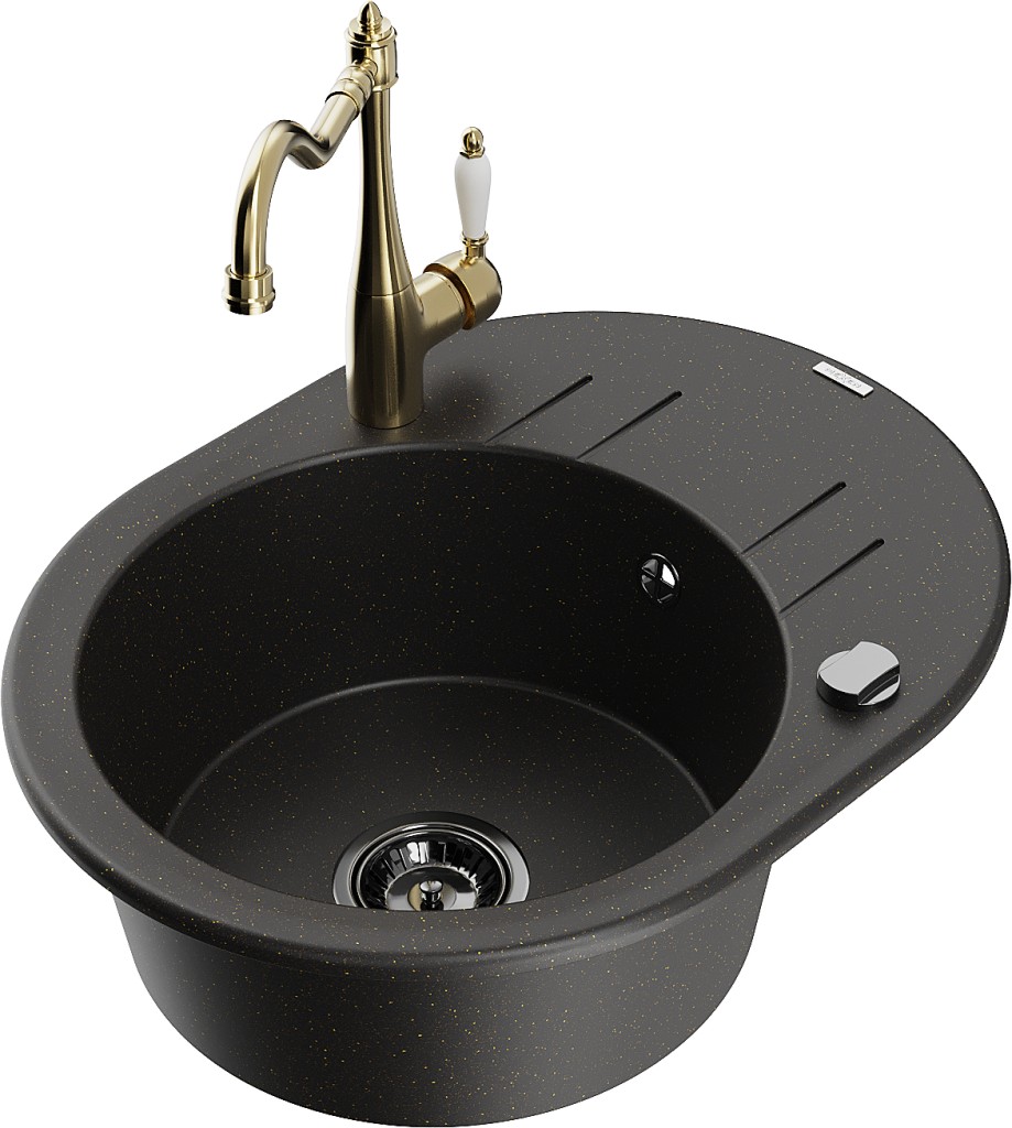 Technické dáta: drez: Rozmer: 586 x 458 x 190 mm Hĺbka komory: 180 mm Šírka komory: 378x374 mm Priemer odtoku: ø90 mm Typ: 1-miska s krátkym odkvapkávačom Typ: Zapustené do pracovnej dosky Farba: čierna / zlatá metalíza Povrchová úprava sifónu: čierna Materiál: žula (80% žulové kamenivo, 20% živice) Prepadový otvor: Áno Otvory: (batérie, automatické) 2 Inštalácia: Univerzálna, je možné inštalovať s odkvapkávačom na ľavú alebo pravú stranu Vysoká odolnosť proti poškriabaniu a zmene farby Odolnosť proti tepelným šokom Ľahko čistiteľný povrch Dva dodatočné vyfrézované otvory na samodierovanie ø35 kuchynská batéria: Materiál: mosadz Farba: Zlatá Hlava: Keramická Prevzdušňovač: Áno Typ: Jedna páka Výška batérie: 290 mm Rozsah výtoku: 260 mm(GT) Ean: 5905315042064