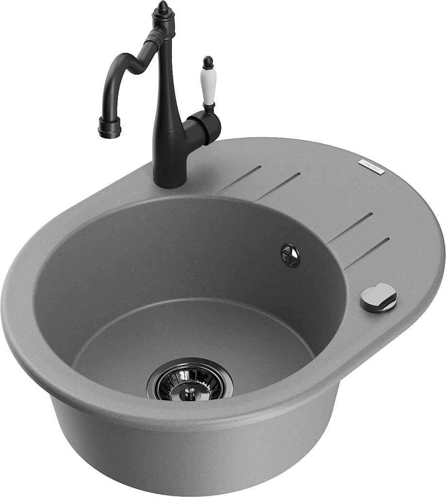 Technické dáta: drez: Rozmer: 586 x 458 x 190 mm Hĺbka komory: 180 mm Šírka komory: 378x374 mm Priemer odtoku: ø90 mm Typ: 1-miska s krátkym odkvapkávačom Typ: Zapustené do pracovnej dosky Šedá farba Povrchová úprava sifónu: čierna Materiál: žula (80% žulové kamenivo, 20% živice) Prepadový otvor: Áno Otvory: (batérie, automatické) 2 Inštalácia: Univerzálna, je možné inštalovať s odkvapkávačom na ľavú alebo pravú stranu Vysoká odolnosť proti poškriabaniu a zmene farby Odolnosť proti tepelným šokom Ľahko čistiteľný povrch Dva dodatočné vyfrézované otvory na samodierovanie ø35 kuchynská batéria: Materiál: mosadz Čierna farba Hlava: Keramická Prevzdušňovač: Áno Typ: Jedna páka Výška batérie: 290 mm Rozsah výtoku: 260 mm(GT) Ean: 5905315041982