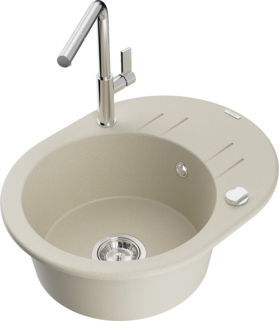 Technické dáta: Drez: Rozmer: 586x458x190 mm Hĺbka komory: 180 mm Šírka komory: 378x374 mm Priemer odtoku: ø90 mm Typ: 1-miska s krátkym odkvapkávačom Typ: Zapustené do pracovnej dosky Farba béžová Povrchová úprava sifónu: Chrome Materiál: žula (80% žulové kamenivo 20% živice) Prepadový otvor: Áno Otvory: (batérie, automat) 2 Inštalácia: Univerzálna, je možné inštalovať s odkvapkávačom na ľavú alebo pravú stranu Vysoká odolnosť proti poškriabaniu a zmene farby Odolnosť proti tepelným šokom Povrch pre ľahké čistenie Dva dodatočné vyfrézované otvory na samodierovanie ø35 Kuchynská batéria: Materiál: mosadz Farba: Chrome Hlava: Keramická Perlátor: Áno Typ: Jednopáková Rozsah výtoku: 245 mm Výška batérie: 307 mm(GT) Ean: 5905315063038