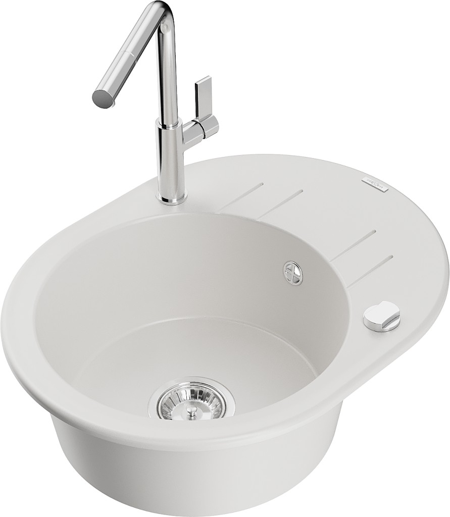 Technické dáta: drez: Rozmer: 586 x 458 x 190 mm Hĺbka komory: 180 mm Šírka komory: 378x374 mm Priemer odtoku: ø90 mm Typ: 1-miska s krátkym odkvapkávačom Typ: Zapustené do pracovnej dosky biela farba Povrchová úprava sifónu: Chrome Materiál: žula (80% žulové kamenivo, 20% živice) Prepadový otvor: Áno Otvory: (batérie, automatické) 2 Inštalácia: Univerzálna, je možné inštalovať s odkvapkávačom na ľavú alebo pravú stranu Vysoká odolnosť proti poškriabaniu a zmene farby Odolnosť proti tepelným šokom Ľahko čistiteľný povrch Dva dodatočné vyfrézované otvory na samodierovanie ø35 kuchynská batéria: Materiál: mosadz Farba: Chrome Hlava: Keramická Prevzdušňovač: Áno Typ: Jedna páka Rozsah výtoku: 245 mm Výška batérie: 307 mm(GT) Ean: 5905315062956