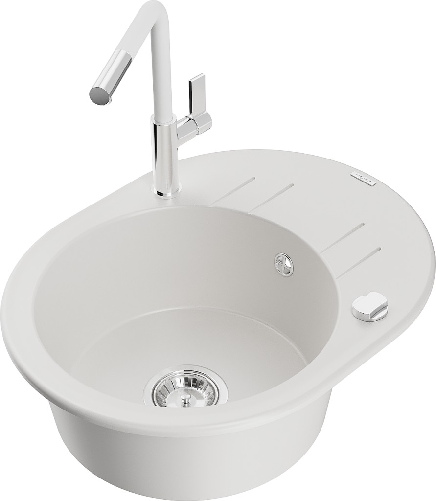 Technické dáta: drez: Rozmer: 586 x 458 x 190 mm Hĺbka komory: 180 mm Šírka komory: 378x374 mm Priemer odtoku: ø90 mm Typ: 1-miska s krátkym odkvapkávačom Typ: Zapustené do pracovnej dosky biela farba Povrchová úprava sifónu: Chrome Materiál: žula (80% žulové kamenivo, 20% živice) Prepadový otvor: Áno Otvory: (batérie, automatické) 2 Inštalácia: Univerzálna, je možné inštalovať s odkvapkávačom na ľavú alebo pravú stranu Vysoká odolnosť proti poškriabaniu a zmene farby Odolnosť proti tepelným šokom Ľahko čistiteľný povrch Dva dodatočné vyfrézované otvory na samodierovanie ø35 kuchynská batéria: Materiál: mosadz Farba: chróm/biela Hlava: Keramická Prevzdušňovač: Áno Typ: Jedna páka Rozsah výtoku: 245 mm Výška batérie: 307 mm(GT) Ean: 5905315062963