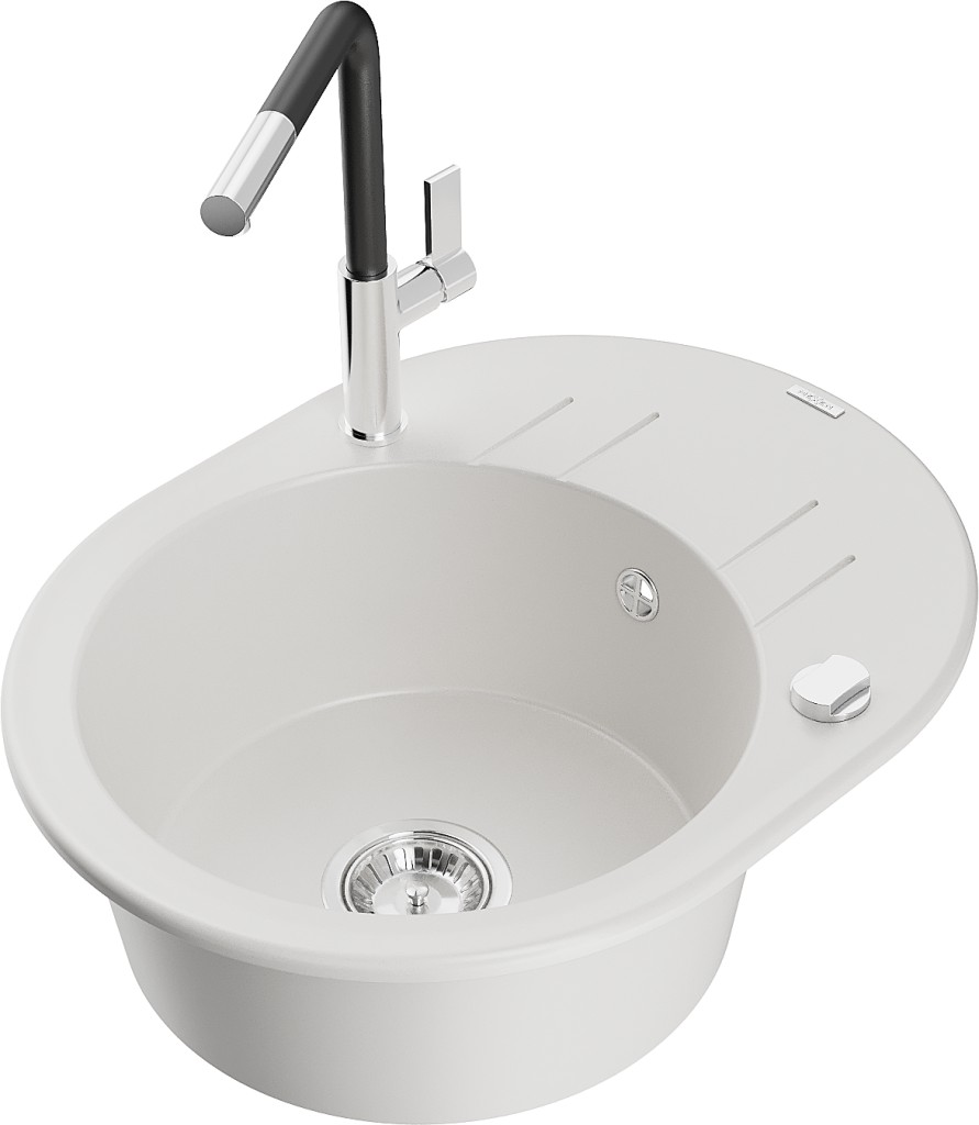 Technické dáta: drez: Rozmer: 586 x 458 x 190 mm Hĺbka komory: 180 mm Šírka komory: 378x374 mm Priemer odtoku: ø90 mm Typ: 1-miska s krátkym odkvapkávačom Typ: Zapustené do pracovnej dosky biela farba Povrchová úprava sifónu: Chrome Materiál: žula (80% žulové kamenivo, 20% živice) Prepadový otvor: Áno Otvory: (batérie, automatické) 2 Inštalácia: Univerzálna, je možné inštalovať s odkvapkávačom na ľavú alebo pravú stranu Vysoká odolnosť proti poškriabaniu a zmene farby Odolnosť proti tepelným šokom Ľahko čistiteľný povrch Dva dodatočné vyfrézované otvory na samodierovanie ø35 kuchynská batéria: Materiál: mosadz Farba: chróm/čierna Hlava: Keramická Prevzdušňovač: Áno Typ: Jedna páka Rozsah výtoku: 245 mm Výška batérie: 307 mm(GT) Ean: 5905315062987