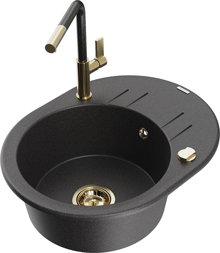 Technické dáta: drez: Rozmer: 586 x 458 x 190 mm Hĺbka komory: 180 mm Šírka komory: 378x374 mm Priemer odtoku: ø90 mm Typ: 1-miska s krátkym odkvapkávačom Typ: Zapustené do pracovnej dosky Farba: Škvrnitá čierna Povrchová úprava sifónu: zlatá Materiál: žula (80% žulové kamenivo, 20% živice) Prepadový otvor: Áno Otvory: (batérie, automatické) 2 Inštalácia: Univerzálna, je možné inštalovať s odkvapkávačom na ľavú alebo pravú stranu Vysoká odolnosť proti poškriabaniu a zmene farby Odolnosť proti tepelným šokom Ľahko čistiteľný povrch Dva dodatočné vyfrézované otvory na samodierovanie ø35 kuchynská batéria: Materiál: mosadz Farba: zlatá/čierna škvrnitá Hlava: Keramická Prevzdušňovač: Áno Typ: Jedna páka Rozsah výtoku: 245 mm Výška batérie: 307 mm(GT) Ean: 5905315063373