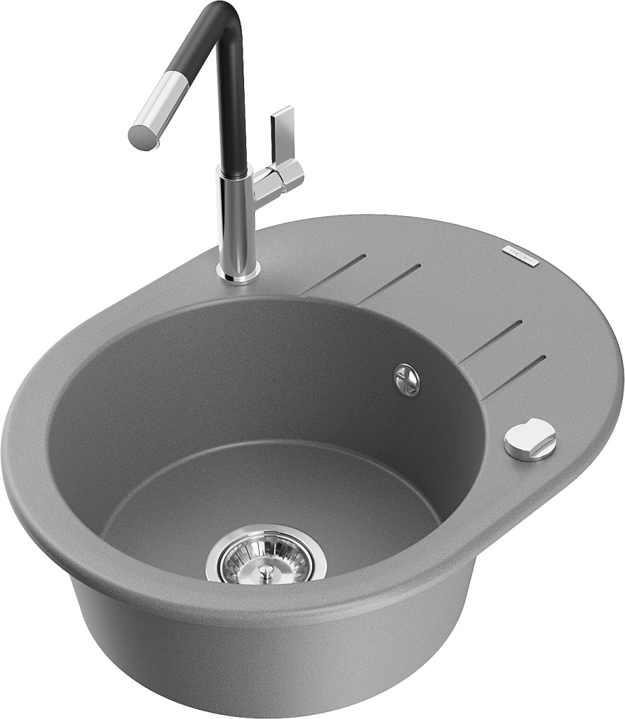 Technické dáta: drez: Rozmer: 586 x 458 x 190 mm Hĺbka komory: 180 mm Šírka komory: 378x374 mm Priemer odtoku: ø90 mm Typ: 1-miska s krátkym odkvapkávačom Typ: Zapustené do pracovnej dosky Šedá farba Povrchová úprava sifónu: Chrome Materiál: žula (80% žulové kamenivo, 20% živice) Prepadový otvor: Áno Otvory: (batérie, automatické) 2 Inštalácia: Univerzálna, je možné inštalovať s odkvapkávačom na ľavú alebo pravú stranu Vysoká odolnosť proti poškriabaniu a zmene farby Odolnosť proti tepelným šokom Ľahko čistiteľný povrch Dva dodatočné vyfrézované otvory na samodierovanie ø35 kuchynská batéria: Materiál: mosadz Farba: chróm/čierna Hlava: Keramická Prevzdušňovač: Áno Typ: Jedna páka Rozsah výtoku: 245 mm Výška batérie: 307 mm(GT) Ean: 5905315063120