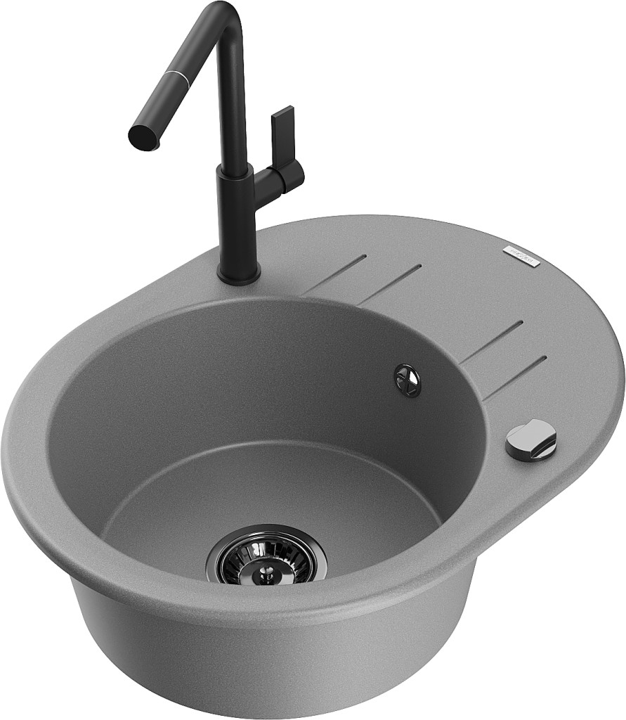 Technické dáta: drez: Rozmer: 586 x 458 x 190 mm Hĺbka komory: 180 mm Šírka komory: 378x374 mm Priemer odtoku: ø90 mm Typ: 1-miska s krátkym odkvapkávačom Typ: Zapustené do pracovnej dosky Šedá farba Povrchová úprava sifónu: čierna Materiál: žula (80% žulové kamenivo, 20% živice) Prepadový otvor: Áno Otvory: (batérie, automatické) 2 Inštalácia: Univerzálna, je možné inštalovať s odkvapkávačom na ľavú alebo pravú stranu Vysoká odolnosť proti poškriabaniu a zmene farby Odolnosť proti tepelným šokom Ľahko čistiteľný povrch Dva dodatočné vyfrézované otvory na samodierovanie ø35 kuchynská batéria: Materiál: mosadz Čierna farba Hlava: Keramická Prevzdušňovač: Áno Typ: Jedna páka Rozsah výtoku: 245 mm Výška batérie: 307 mm(GT) Ean: 5905315063168