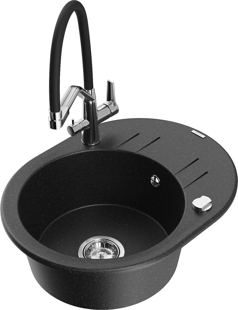 Technické dáta: drez: Rozmer: 586 x 458 x 190 mm Hĺbka komory: 180 mm Šírka komory: 378x374 mm Priemer odtoku: ø90 mm Typ: 1-miska s krátkym odkvapkávačom Typ: Zapustené do pracovnej dosky Farba: čierna/strieborná metalíza Povrchová úprava sifónu: Chrome Materiál: žula (80% žulové kamenivo, 20% živice) Prepadový otvor: Áno Otvory: (batérie, automatické) 2 Inštalácia: Univerzálna, je možné inštalovať s odkvapkávačom na ľavú alebo pravú stranu Vysoká odolnosť proti poškriabaniu a zmene farby Odolnosť proti tepelným šokom Ľahko čistiteľný povrch Dva dodatočné vyfrézované otvory na samodierovanie ø35 kuchynská batéria: Materiál: mosadz Farba: chróm/čierna Hlavy: Keramické Prevzdušňovač: Áno Typ hubica: Flexibilný s mosadzným držiakom Rozsah výtoku: 260 mm Výška: 405 mm Typ: Dve rukoväte Dvojhlavá batéria s prídavným filtrom na pitnú vodu(GT) Ean: 5905315055309