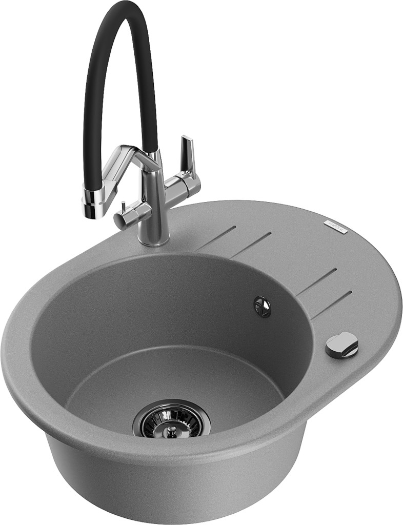 Technické dáta: drez: Rozmer: 586 x 458 x 190 mm Hĺbka komory: 180 mm Šírka komory: 378x374 mm Priemer odtoku: ø90 mm Typ: 1-miska s krátkym odkvapkávačom Typ: Zapustené do pracovnej dosky Šedá farba Povrchová úprava sifónu: čierna Materiál: žula (80% žulové kamenivo, 20% živice) Prepadový otvor: Áno Otvory: (batérie, automatické) 2 Inštalácia: Univerzálna, je možné inštalovať s odkvapkávačom na ľavú alebo pravú stranu Vysoká odolnosť proti poškriabaniu a zmene farby Odolnosť proti tepelným šokom Ľahko čistiteľný povrch Dva dodatočné vyfrézované otvory na samodierovanie ø35 kuchynská batéria: Materiál: mosadz Farba: chróm/čierna Hlavy: Keramické Prevzdušňovač: Áno Typ hubica: Flexibilný s mosadzným držiakom Rozsah výtoku: 260 mm Výška: 405 mm Typ: Dve rukoväte Dvojhlavá batéria s prídavným filtrom na pitnú vodu(GT) Ean: 5905315055255