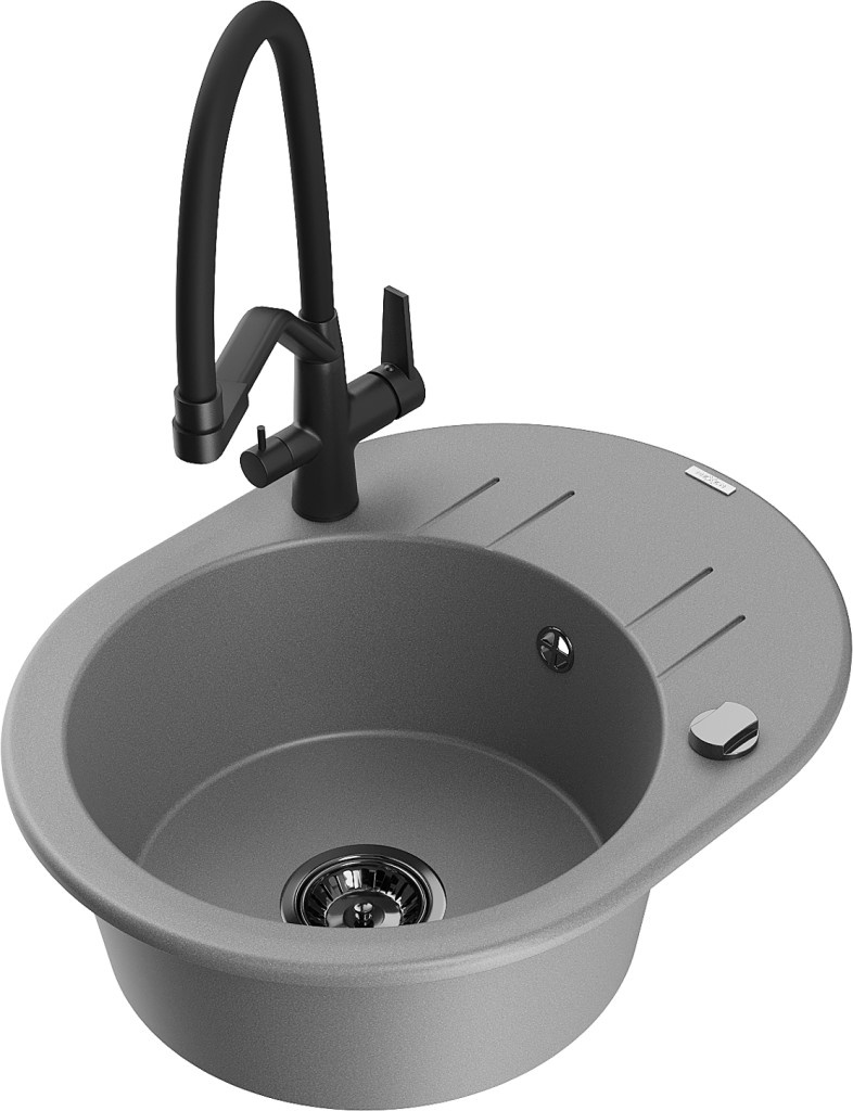 Technické dáta: drez: Rozmer: 586 x 458 x 190 mm Hĺbka komory: 180 mm Šírka komory: 378x374 mm Priemer odtoku: ø90 mm Typ: 1-miska s krátkym odkvapkávačom Typ: Zapustené do pracovnej dosky Šedá farba Povrchová úprava sifónu: čierna Materiál: žula (80% žulové kamenivo, 20% živice) Prepadový otvor: Áno Otvory: (batérie, automatické) 2 Inštalácia: Univerzálna, je možné inštalovať s odkvapkávačom na ľavú alebo pravú stranu Vysoká odolnosť proti poškriabaniu a zmene farby Odolnosť proti tepelným šokom Ľahko čistiteľný povrch Dva dodatočné vyfrézované otvory na samodierovanie ø35 kuchynská batéria: Materiál: mosadz Čierna farba Hlavy: Keramické Prevzdušňovač: Áno Typ hubica: Flexibilný s mosadzným držiakom Rozsah výtoku: 260 mm Výška: 405 mm Typ: Dve rukoväte Dvojhlavá batéria s prídavným filtrom na pitnú vodu(GT) Ean: 5905315055286