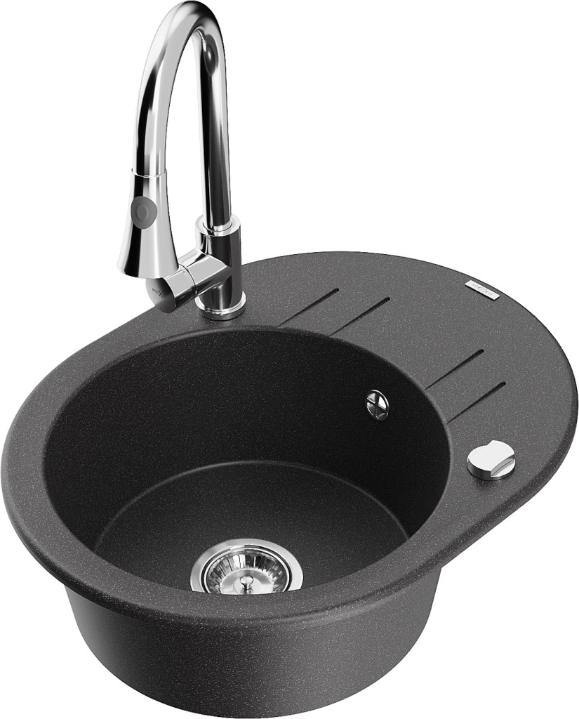 Technické dáta: drez: Rozmer: 586 x 458 x 190 mm Hĺbka komory: 180 mm Šírka komory: 378x374 mm Priemer odtoku: ø90 mm Typ: 1-miska s krátkym odkvapkávačom Typ: Zapustené do pracovnej dosky Farba: Škvrnitá čierna Povrchová úprava sifónu: Chrome Materiál: žula (80% žulové kamenivo, 20% živice) Prepadový otvor: Áno Otvory: (batérie, automatické) 2 Inštalácia: Univerzálna, je možné inštalovať s odkvapkávačom na ľavú alebo pravú stranu Vysoká odolnosť proti poškriabaniu a zmene farby Odolnosť proti tepelným šokom Ľahko čistiteľný povrch Dva dodatočné vyfrézované otvory na samodierovanie ø35 kuchynská batéria: Materiál: mosadz Farba: Chrome Hlava: Keramická Prevzdušňovač: Áno Typ: Jedna páka Výška batérie: 380 mm Rozsah výtoku: 252 mm Typ výtoku: Výsuvný(GT) Ean: 5905315031839