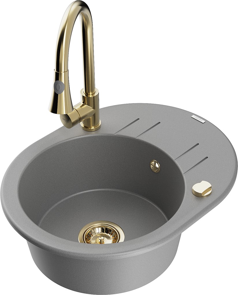 Technické dáta: drez: Rozmer: 586 x 458 x 190 mm Hĺbka komory: 180 mm Šírka komory: 378x374 mm Priemer odtoku: ø90 mm Typ: 1-miska s krátkym odkvapkávačom Typ: Zapustené do pracovnej dosky Šedá farba Povrchová úprava sifónu: zlatá Materiál: žula (80% žulové kamenivo, 20% živice) Prepadový otvor: Áno Otvory: (batérie, automatické) 2 Inštalácia: Univerzálna, je možné inštalovať s odkvapkávačom na ľavú alebo pravú stranu Vysoká odolnosť proti poškriabaniu a zmene farby Odolnosť proti tepelným šokom Ľahko čistiteľný povrch Dva dodatočné vyfrézované otvory na samodierovanie ø35 kuchynská batéria: Materiál: mosadz Farba: Zlatá Hlava: Keramická Prevzdušňovač: Áno Typ: Jedna páka Výška batérie: 380 mm Rozsah výtoku: 252 mm Typ výtoku: Výsuvný(GT) Ean: 5905315031709