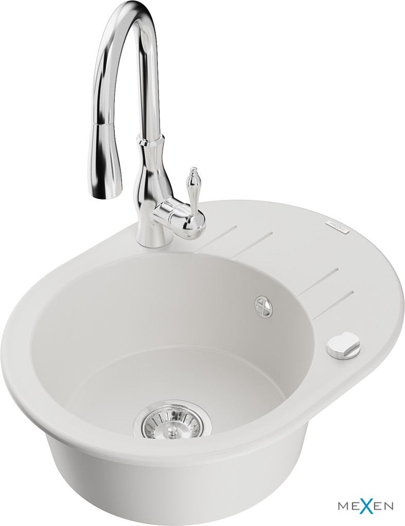 Technické dáta: drez: Rozmer: 586 x 458 x 190 mm Hĺbka komory: 180 mm Rozmery komory: 378x374 mm Priemer odtoku: ø90 mm Typ: 1-miska s krátkym odkvapkávačom Typ: Zapustené do pracovnej dosky biela farba Povrchová úprava sifónu: Chrome Materiál: žula (80% žulové kamenivo, 20% živice) Prepadový otvor: Áno Otvory: (batérie, automatické) 2 Inštalácia: Univerzálna, je možné inštalovať s odkvapkávačom na ľavú alebo pravú stranu Vysoká odolnosť proti poškriabaniu a zmene farby Odolnosť proti tepelným šokom Ľahko čistiteľný povrch Dva dodatočné vyfrézované otvory na samodierovanie ø35 kuchynská batéria: Materiál: mosadz Čierna farba Hlava: Keramická Prevzdušňovač: Áno Typ: Jedna páka Výška batérie: 410 mm Rozsah výtoku: 231 mm(GT) Ean: 5905315036728