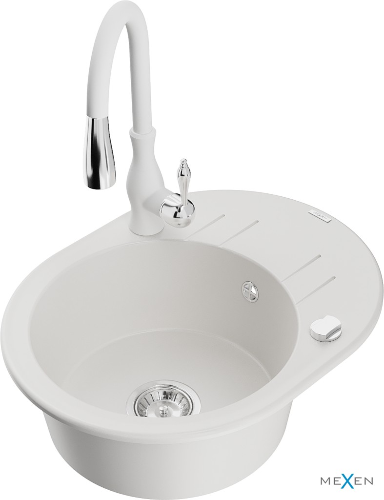 Technické dáta: drez: Rozmer: 586 x 458 x 190 mm Hĺbka komory: 180 mm Rozmery komory: 378x374 mm Priemer odtoku: ø90 mm Typ: 1-miska s krátkym odkvapkávačom Typ: Zapustené do pracovnej dosky biela farba Povrchová úprava sifónu: Chrome Materiál: žula (80% žulové kamenivo, 20% živice) Prepadový otvor: Áno Otvory: (batérie, automatické) 2 Inštalácia: Univerzálna, je možné inštalovať s odkvapkávačom na ľavú alebo pravú stranu Vysoká odolnosť proti poškriabaniu a zmene farby Odolnosť proti tepelným šokom Ľahko čistiteľný povrch Dva dodatočné vyfrézované otvory na samodierovanie ø35 kuchynská batéria: Materiál: mosadz biela farba Hlava: Keramická Prevzdušňovač: Áno Typ: Jedna páka Výška batérie: 410 mm Rozsah výtoku: 231 mm(GT) Ean: 5905315036735