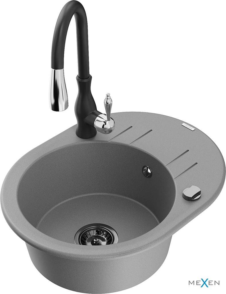 Technické dáta: drez: Rozmer: 586 x 458 x 190 mm Hĺbka komory: 180 mm Rozmery komory: 378x374 mm Priemer odtoku: ø90 mm Typ: 1-miska s krátkym odkvapkávačom Typ: Zapustené do pracovnej dosky Šedá farba Povrchová úprava sifónu: čierna Materiál: žula (80% žulové kamenivo, 20% živice) Prepadový otvor: Áno Otvory: (batérie, automatické) 2 Inštalácia: Univerzálna, je možné inštalovať s odkvapkávačom na ľavú alebo pravú stranu Vysoká odolnosť proti poškriabaniu a zmene farby Odolnosť proti tepelným šokom Ľahko čistiteľný povrch Dva dodatočné vyfrézované otvory na samodierovanie ø35 kuchynská batéria: Materiál: mosadz Čierna farba Hlava: Keramická Prevzdušňovač: Áno Typ: Jedna páka Výška batérie: 410 mm Rozsah výtoku: 231 mm(GT) Ean: 5905315036834