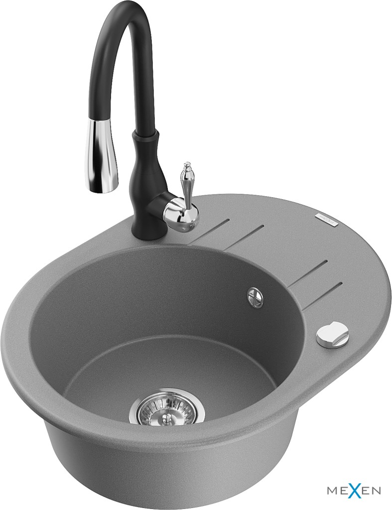 Technické dáta: drez: Rozmer: 586 x 458 x 190 mm Hĺbka komory: 180 mm Rozmery komory: 378x374 mm Priemer odtoku: ø90 mm Typ: 1-miska s krátkym odkvapkávačom Typ: Zapustené do pracovnej dosky Šedá farba Povrchová úprava sifónu: Chrome Materiál: žula (80% žulové kamenivo, 20% živice) Prepadový otvor: Áno Otvory: (batérie, automatické) 2 Inštalácia: Univerzálna, je možné inštalovať s odkvapkávačom na ľavú alebo pravú stranu Vysoká odolnosť proti poškriabaniu a zmene farby Odolnosť proti tepelným šokom Ľahko čistiteľný povrch Dva dodatočné vyfrézované otvory na samodierovanie ø35 kuchynská batéria: Materiál: mosadz Čierna farba Hlava: Keramická Prevzdušňovač: Áno Typ: Jedna páka Výška batérie: 410 mm Rozsah výtoku: 231 mm(GT) Ean: 5905315036827