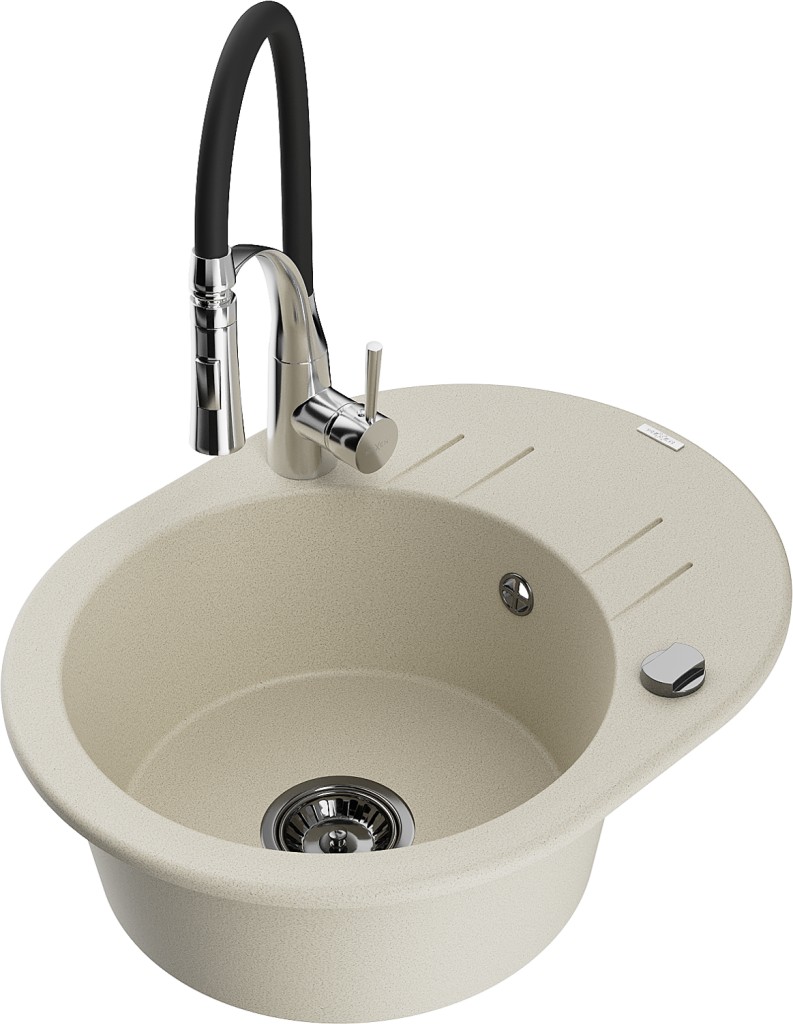 Technické dáta: Drez: Rozmer: 586x458x190 mm Hĺbka komory: 180 mm Šírka komory: 378x374 mm Priemer odtoku: ø90 mm Typ: 1-miska s krátkym odkvapkávačom Typ: Zapustené do pracovnej dosky Farba béžová Povrchová úprava sifónu: čierna Materiál: žula (80% žulové kamenivo 20% živice) Prepadový otvor: Áno Otvory: (batérie, automat) 2 Inštalácia: Univerzálna, je možné inštalovať s odkvapkávačom na ľavú alebo pravú stranu Vysoká odolnosť proti poškriabaniu a zmene farby Odolnosť proti tepelným šokom Povrch pre ľahké čistenie Dva dodatočné vyfrézované otvory na samodierovanie ø35 Kuchynská batéria: Materiál: mosadz Farba: chróm/čierna Hlava: Keramická Perlátor: Áno Typ výtoku: Flexibilný s mosadzným držiakom Typ: Jednopákové Výška batérie: 430 mm Rozsah výtoku: 235 mm(GT) Ean: 5905315048479