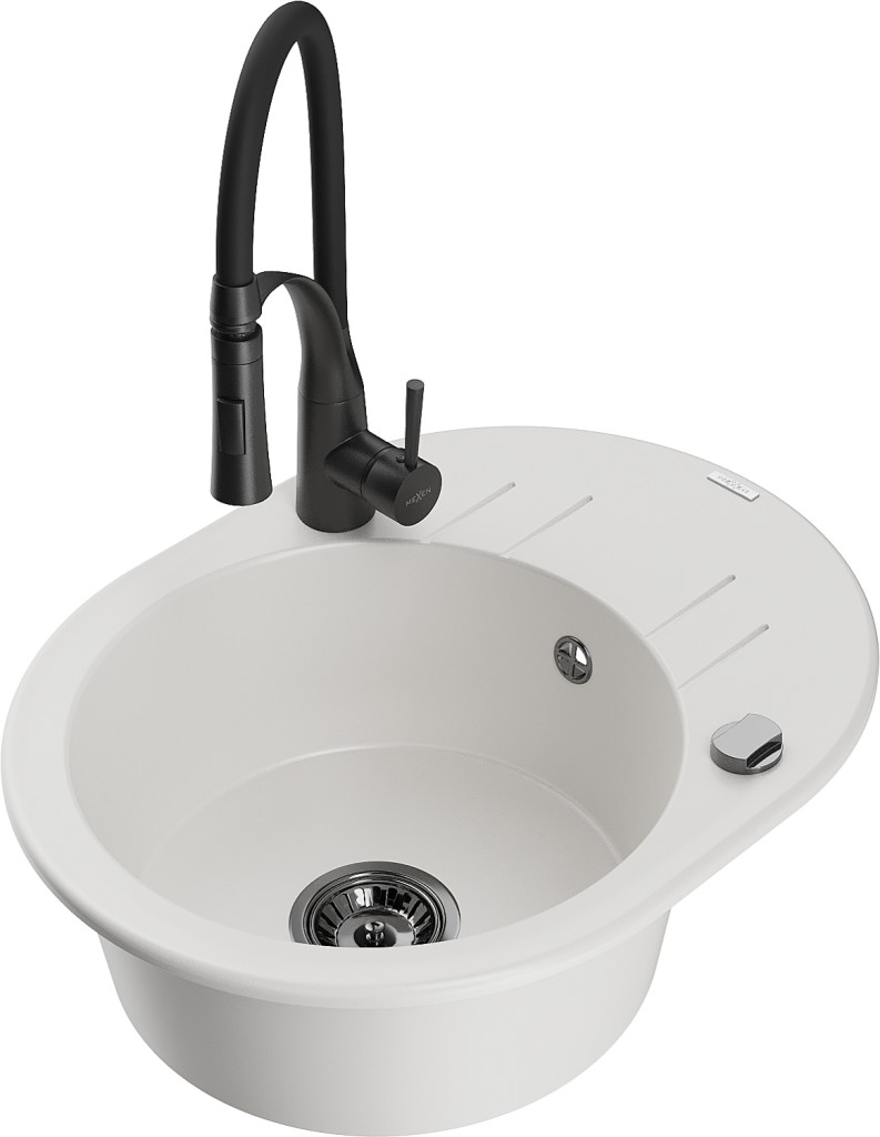 Technické dáta: drez: Rozmer: 586 x 458 x 190 mm Hĺbka komory: 180 mm Šírka komory: 378x374 mm Priemer odtoku: ø90 mm Typ: 1-miska s krátkym odkvapkávačom Typ: Zapustené do pracovnej dosky biela farba Povrchová úprava sifónu: čierna Materiál: žula (80% žulové kamenivo, 20% živice) Prepadový otvor: Áno Otvory: (batérie, automatické) 2 Inštalácia: Univerzálna, je možné inštalovať s odkvapkávačom na ľavú alebo pravú stranu Vysoká odolnosť proti poškriabaniu a zmene farby Odolnosť proti tepelným šokom Ľahko čistiteľný povrch Dva dodatočné vyfrézované otvory na samodierovanie ø35 kuchynská batéria: Materiál: mosadz Čierna farba Hlava: Keramická Prevzdušňovač: Áno Typ hubica: Flexibilný s mosadzným držiakom Typ: Jedna páka Výška batérie: 430 mm Rozsah výtoku: 235 mm(GT) Ean: 5905315048448