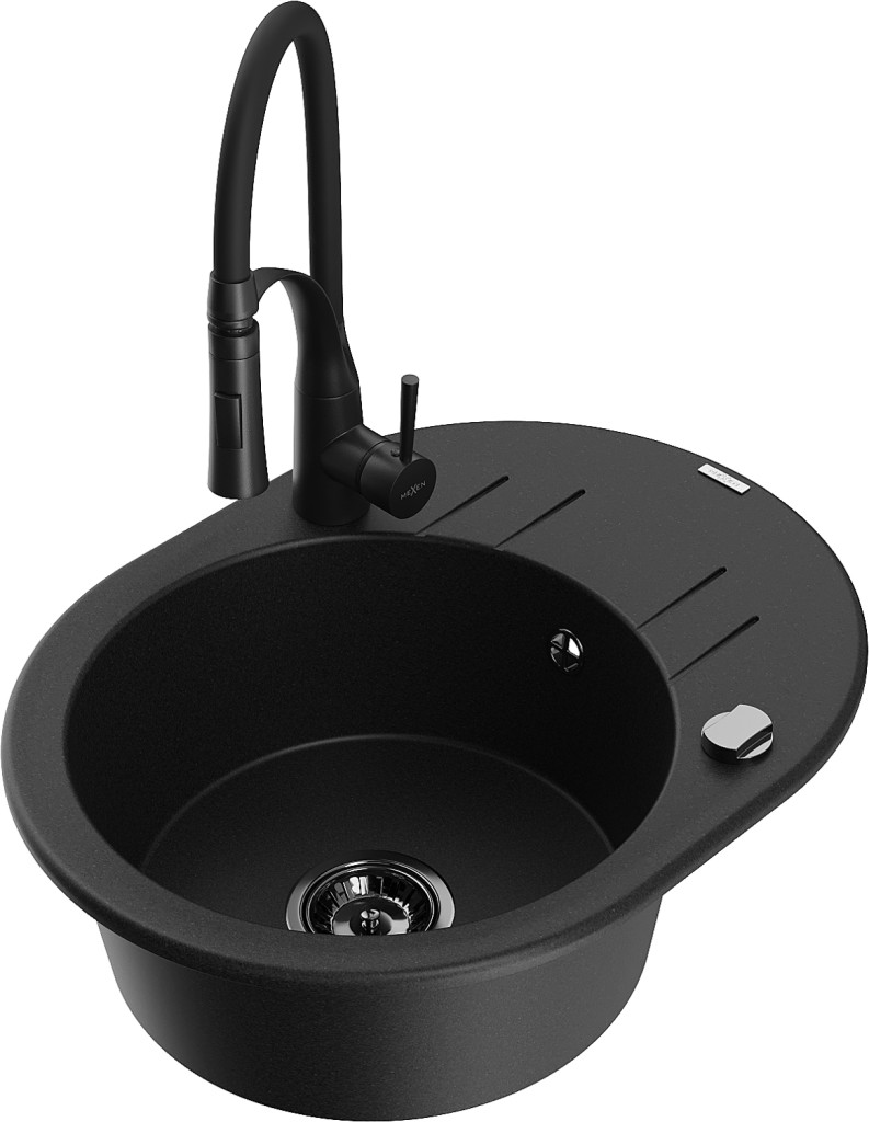 Technické dáta: drez: Rozmer: 586 x 458 x 190 mm Hĺbka komory: 180 mm Šírka komory: 378x374 mm Priemer odtoku: ø90 mm Typ: 1-miska s krátkym odkvapkávačom Typ: Zapustené do pracovnej dosky Čierna farba Povrchová úprava sifónu: čierna Materiál: žula (80% žulové kamenivo, 20% živice) Prepadový otvor: Áno Otvory: (batérie, automatické) 2 Inštalácia: Univerzálna, je možné inštalovať s odkvapkávačom na ľavú alebo pravú stranu Vysoká odolnosť proti poškriabaniu a zmene farby Odolnosť proti tepelným šokom Ľahko čistiteľný povrch Dva dodatočné vyfrézované otvory na samodierovanie ø35 kuchynská batéria: Materiál: mosadz Čierna farba Hlava: Keramická Prevzdušňovač: Áno Typ: Jedna páka Výška batérie: 430 mm Rozsah výtoku: 185 mm Batéria má výsuvný výtok(GT) Ean: 5905315048806